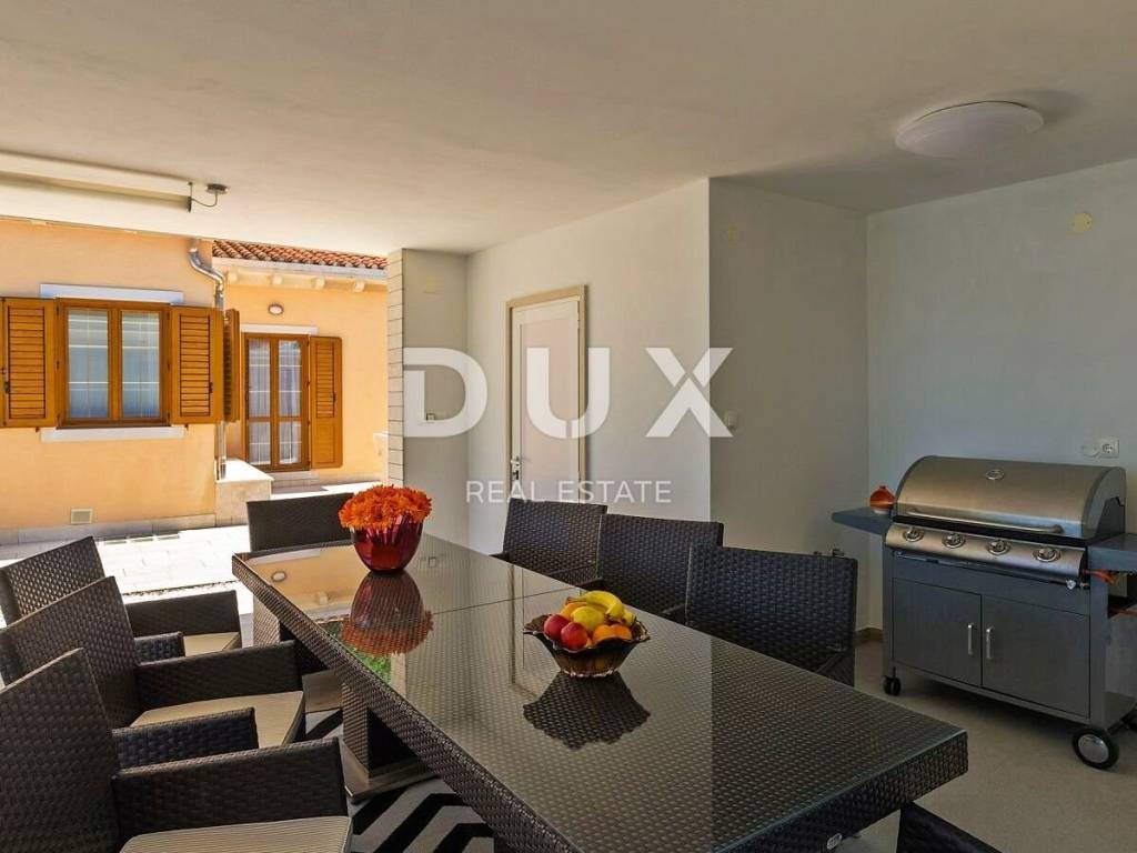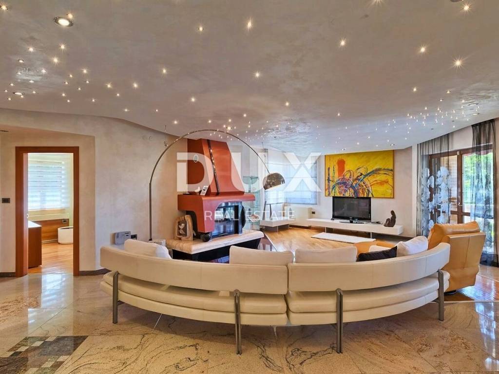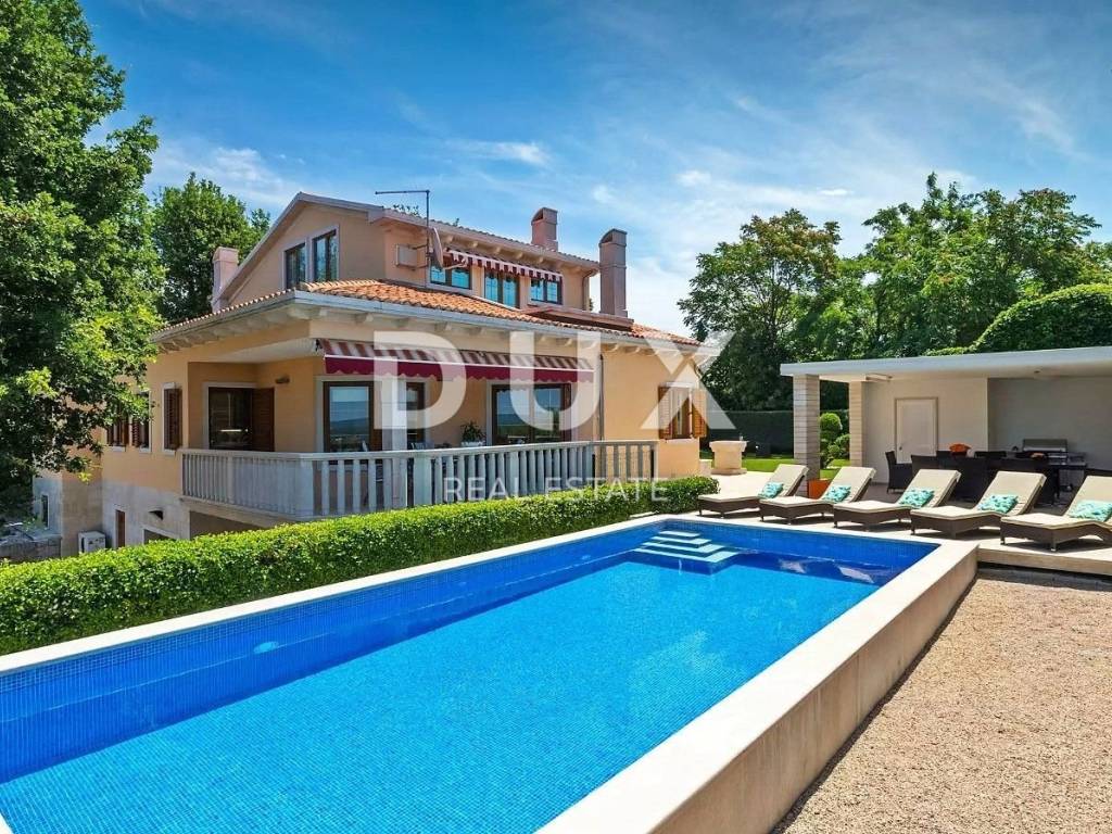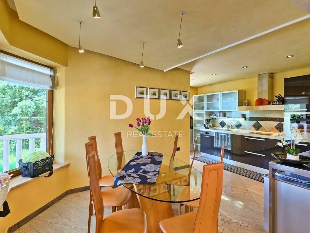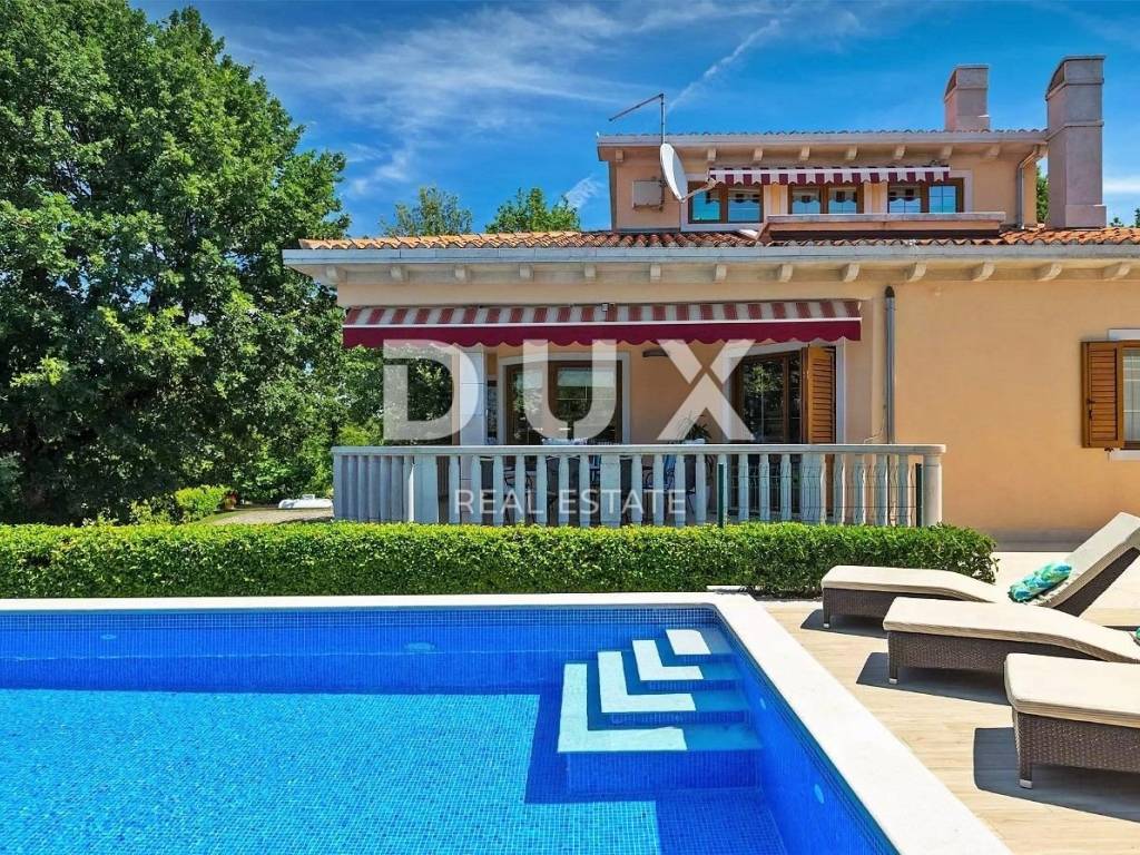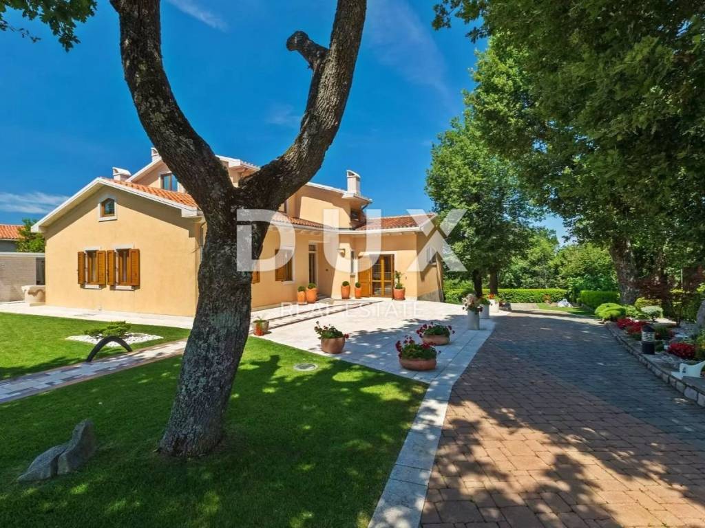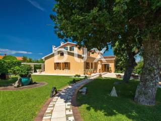 On the southeastern coast of Istria, at the place where the green hills meet the sea, where nature and heritage meet, there are two towns of similar size, but with different but mutually complementary characters - Labin and Rabac . The picturesque town of Labin rises on a hill 320 m high, only five kilometers from the white pebble beaches in Rabac. Intertwined with rich history and mining that marked this region, Labin, which was declared an independent republic for a short time, is today a fascinating city of contradictions; old and new, history and present, tourism and art. Not far from the town of Labin, a luxurious villa with a panoramic view is for sale. The architecture with its high-quality construction and beautiful garden ensured that the villa fits perfectly into its surroundings. In addition to its beautiful exterior, this impressive villa also impresses with its interior design. The living space of this luxurious villa extends through the basement, ground floor and first floor. The basement consists of a garage, a wine cellar, a social room with a kitchen, a bedroom, a bathroom and a boiler room. On the ground floor there is a living room, kitchen and dining room, three bedrooms, two bathrooms, a storage room and a covered terrace. The first floor consists of a bedroom with a private bathroom and a terrace. Next to the villa is a 36 m swimming pool with a sun deck and a covered summer kitchen with a bathroom. The spacious and well-kept garden is maintained, automatically irrigated and horticulturally decorated with traditional plants and lawn. This peaceful retreat on the outskirts of the city is an ideal opportunity for family life or as an investment for rental for tourist purposes.
