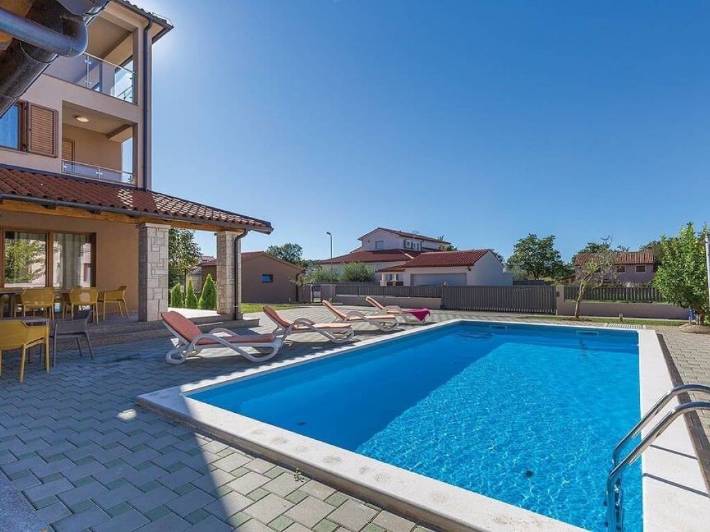 New comfortable holiday house in the small village of Volme, not far from Banjole. The house has a very high quality interior, complete air conditioning, outdoor pool 37 m2, large fenced yard. It is situated close to the sea. It consists of three fully equipped accommodation units with internal communication.