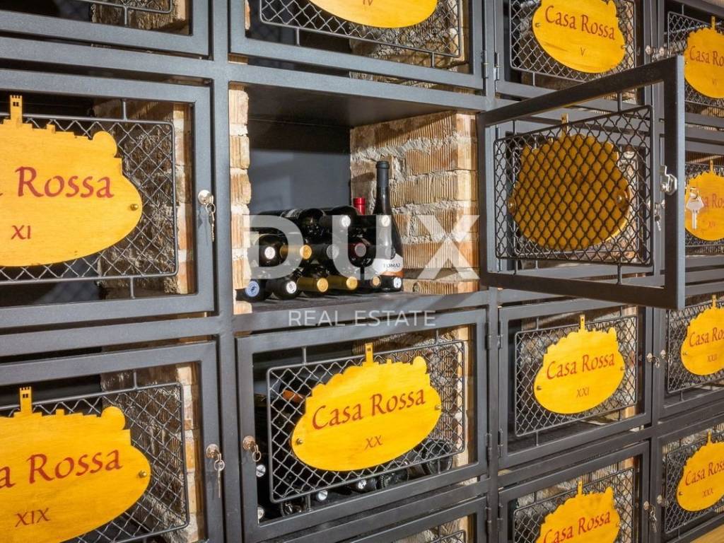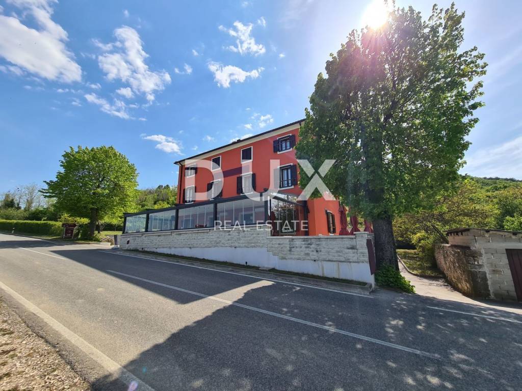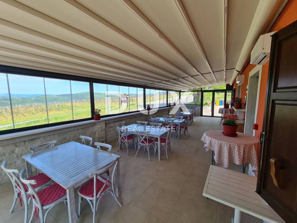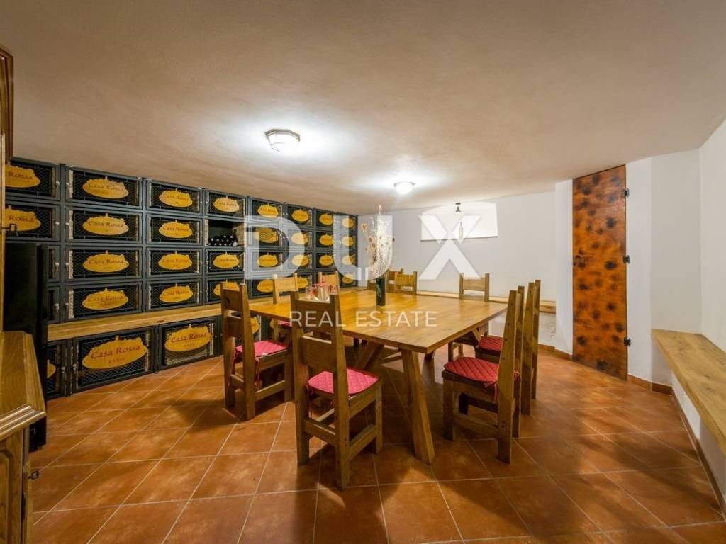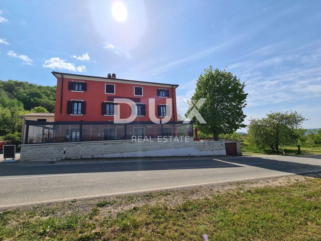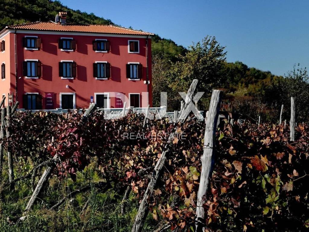 Not far from Motovun, there is an Istrian house built in 1910, which after renovation was converted into a tourist facility with a unique offer. The building consists of four floors, with a total area of 388 m2. On the ground floor there is a tavern with an outdoor terrace, kitchen, toilet for guests and staff, reception. In the inner part of the tavern, there is a fireplace which, in addition to creating an atmosphere, the ventilation system provides central heating. An internal staircase leads upstairs. The two floors are occupied by eight double rooms categorized with two stars. Each room has its own bathroom, air conditioning and TV and are attractively and thematically decorated, in accordance with the offer of the facility and in accordance with the view of the landscape made up of endless vineyards. The basement consists of a storage room and a wine cellar. The wine cellar is a special feature of this facility because, in addition to offering quality wines from local winemakers, it has a wine bank, the only one of its kind in Istria, which consists of 39 wine safes. The garden, with an area of 1500 m2, consists of a large parking lot and an orchard which is an after lunch lounge zone, where guests like to relax. The building was completely renovated in 2018, with new installations, new wall and floor coverings, exterior and interior carpentry, toilets, new roof, facade. Significant energy savings are enabled by solar heating of sanitary water. Internet and Wi-Fi are available on site. This facility, with its offer and interior, fits into the landscape and forms a complete oenological story, which promotes wine tourism and contributes to the recognizability of Motovun, its surroundings and the whole of Istria. Being located in a quiet location with a beautiful view of Motovun and the surrounding vineyards, this facility is an ideal place for vacation and an ideal opportunity to return the investment as it is a facility with a well-established business near the city that is active throughout the year. . There is a possibility of buying the surrounding construction land owned by the Republic of Croatia, which would allow future owners to expand the offer.