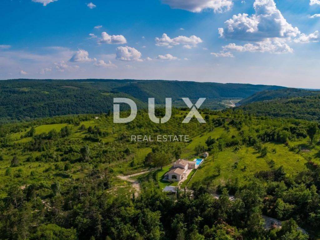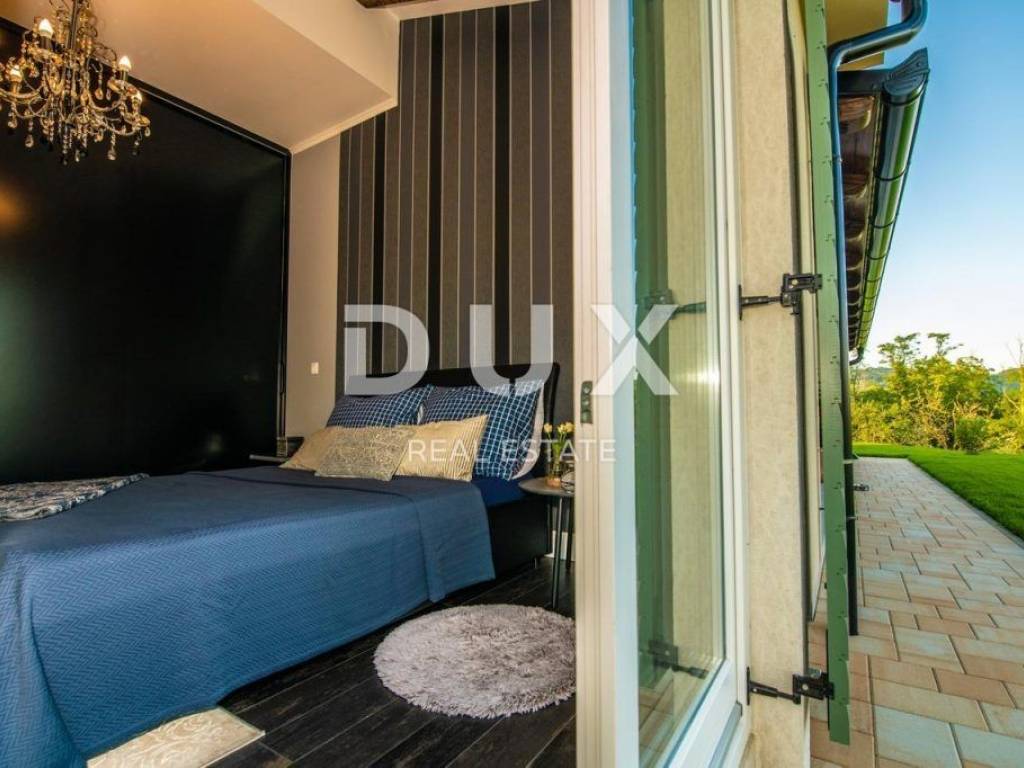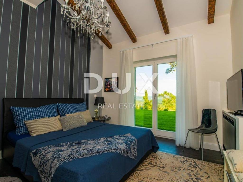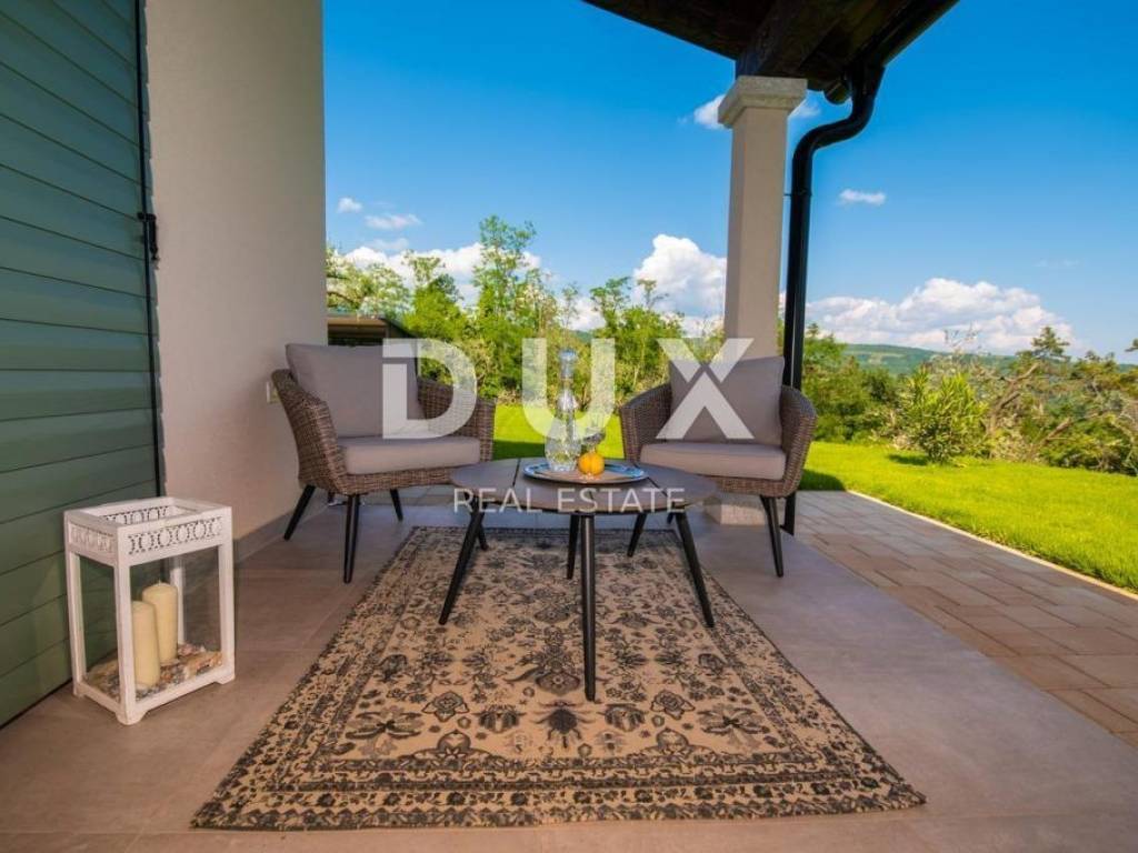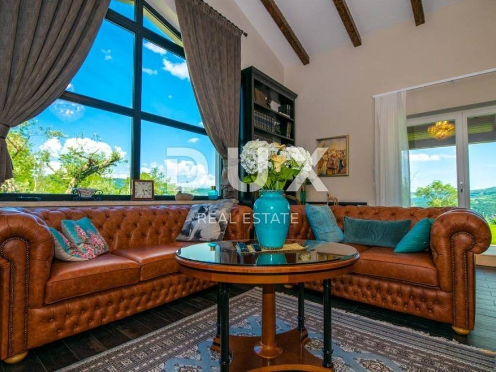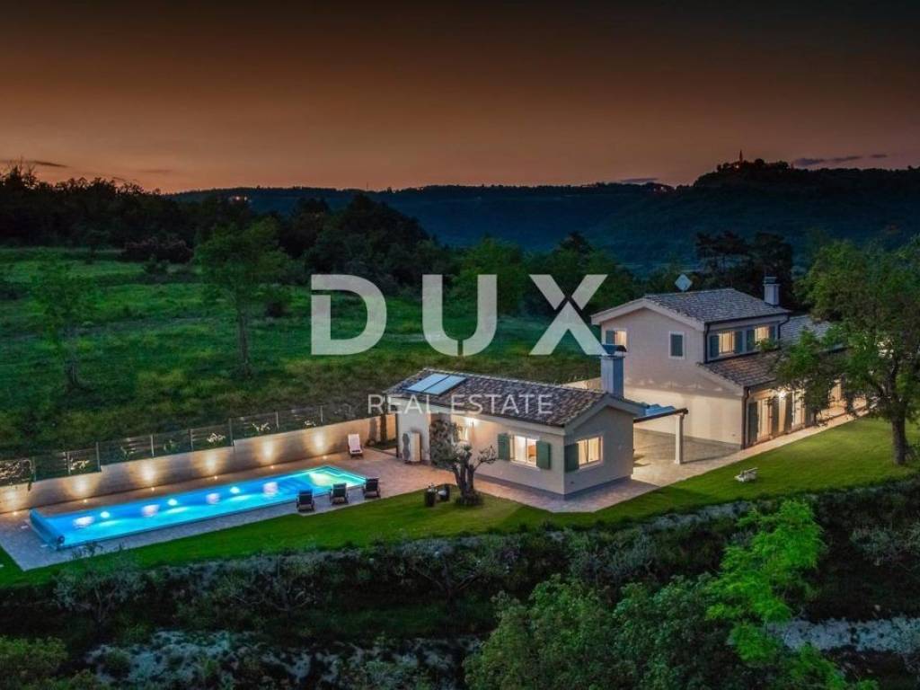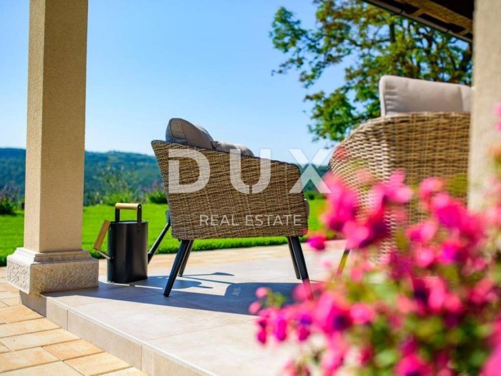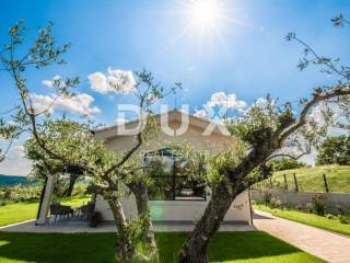 The luxury house consists of a living, a kitchen with a dining area, 3 bedrooms, a wardrobe, a study, 2 bathrooms, a toilet and a terrace. The tavern has a beautiful fireplace and kitchen, bedroom and bathroom. The house is heated / cooled by a convector valve, 2 fireplaces (the fireplace in the main house is connected to a complete central heating system - then all rooms are heated by wood and not by electricity), solar panels for hot water. Underfloor heating installed in all bathrooms. This modern villa with one of the most beautiful views in Istria provides complete privacy and luxury.