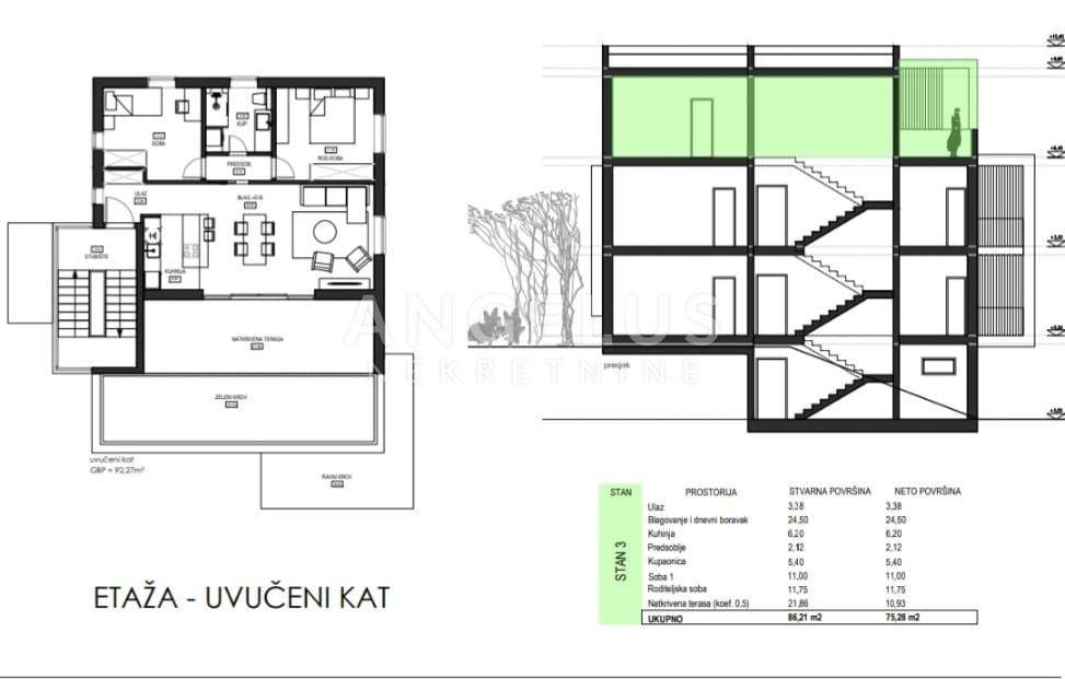 Najveća visina je tri nadzemne etaže, pri čemu se treća etaža oblikuje kao potkrovlje; - najmanje 2 PGM/1 stan, uz obvezan smještaj vozila na građevnoj čestici
