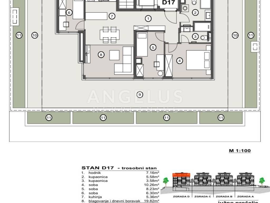 Real estate agency Angelus Real Estate offers for sale a three-bedroom PENTHOUSE apartment of 116.86 m2 in a NEW BUILDING in Split - Pazdigrad district