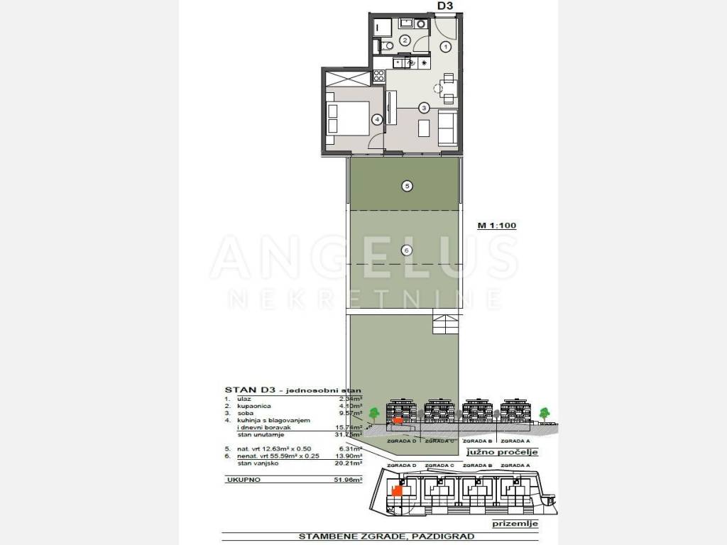 Real estate agency Angelus Real Estate offers for sale a one-bedroom apartment of 51.96 m2 in a NEW BUILDING in Split - Pazdigrad district