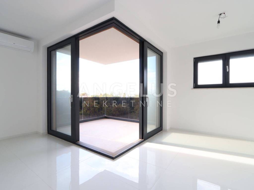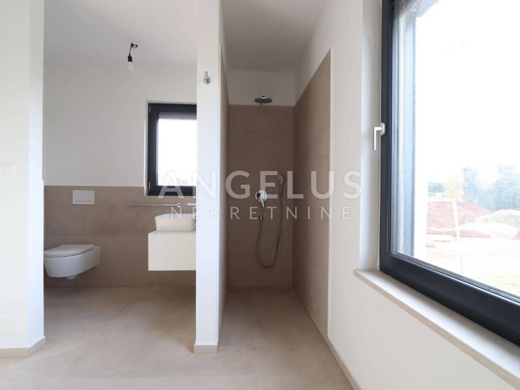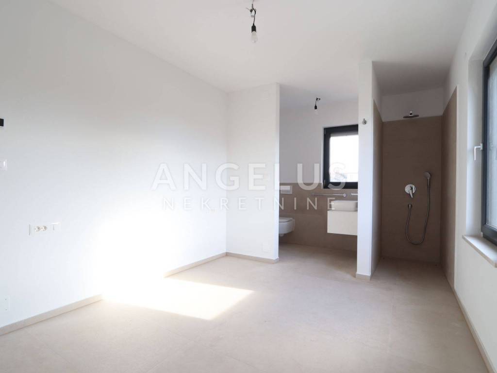 DESCRIPTION: This is a four-room apartment in a new building with a total area of 121 m2. It is located in an excellent location with a sea view, only 1.3 km from the beach and 3 km from the picturesque center of Poreč and the famous Euphrasian Basilica. The apartment offers 3 bedrooms on the first floor, two bathrooms, a storage room (boiler room) and a large living room, kitchen and dining room in an open space concept. On the second floor there is another separate room with a bathroom and a roof terrace offering a sea view.