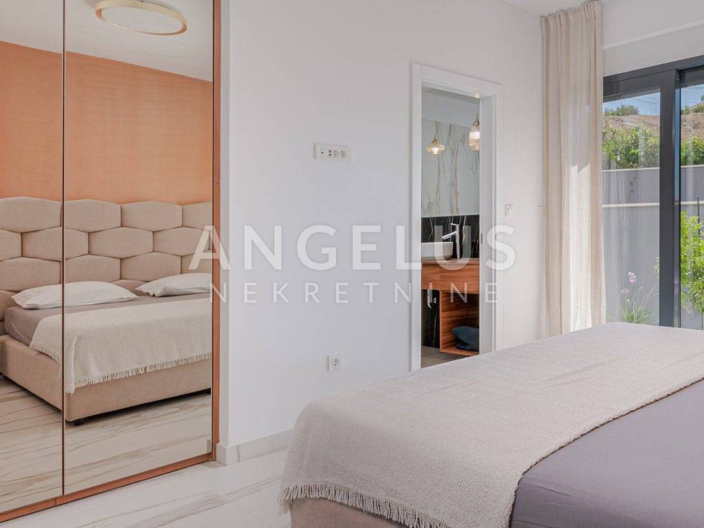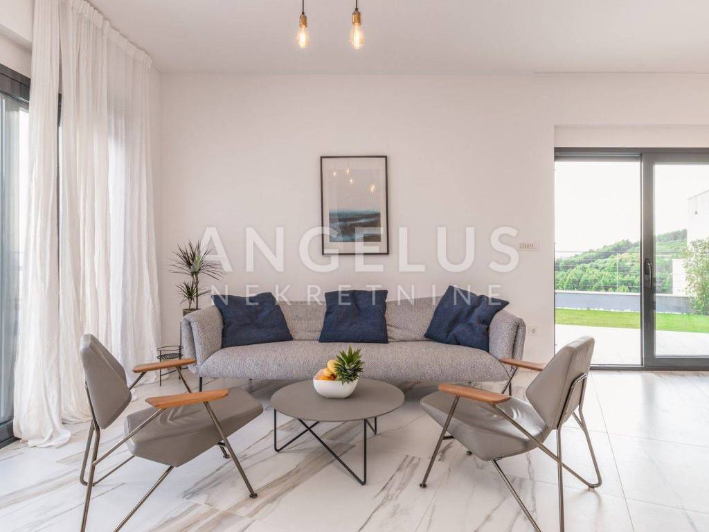 The villa is characterized by clean and simple lines, and the interior is equipped with award-winning designer furniture from a Croatian manufacturer. The interior, with its simplicity and sophistication, creates an atmosphere of relaxed place, while large glass walls separating the interior and exterior fill the space with plenty of natural light, create airiness and open the interior to a beautiful view of the coast and Split, the terrace and the attractive pool. Going out on the terrace, you are surrounded by peace and quiet, which every true hedonist will know how to enjoy. In fact, it is peacefulness of this location that strike you first - with no noise from busy roads.