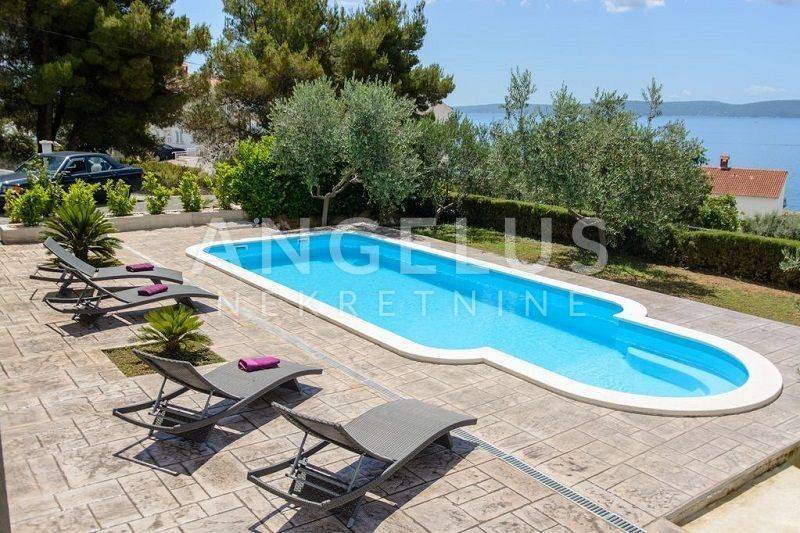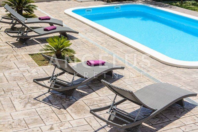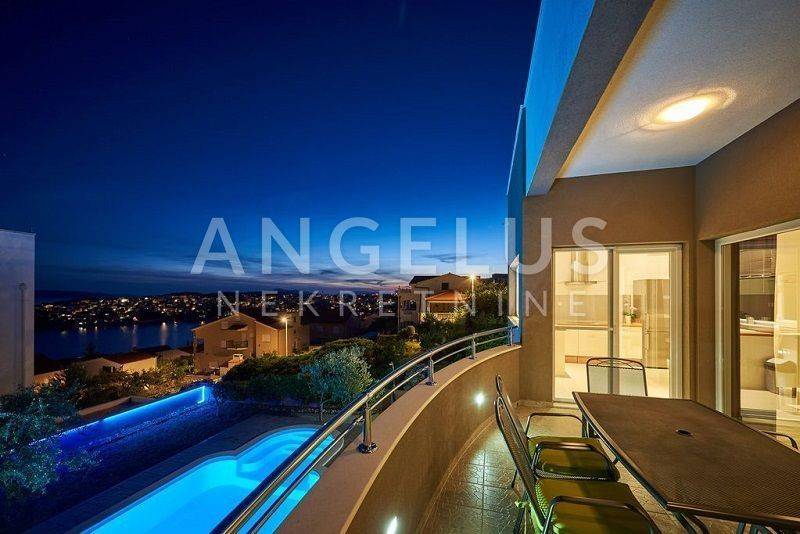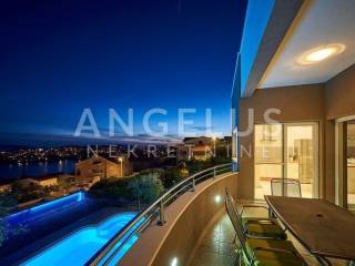 The villa is located on the island of Čiovo, which is connected to Trogir by a mobile bridge. It is located on the south side of this island in Okrug Gornji, district Mavarčica, with a beautiful view of the island of Drvenik and Šolta. Distance to the town of Trogir is 7 km, to the airport 8 km, but it is also connected by sea to the airport, thus avoiding crowded road traffic. Split distance is 30 km and Sibenik 60 km. The villa is 200 m away from the sea, and because of the steep terrain it has a beautiful view of the sea and the islands.