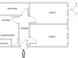 -Stan se sastoji od: hodnika, 2 spavaće sobe, kuhinje i blagovaone, ostave, kupaonice i terase.