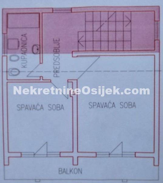 -KAT: hodnik, kupaonica, 2 spavaće sobe i balkon.