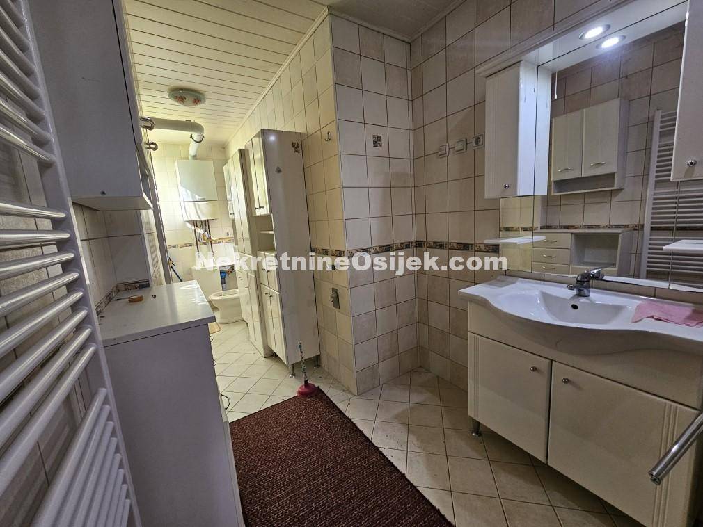 -Podovi:keramika + laminat. Stolarija:drvena. Grijanje:plinsko-centralno (kombi bojler)