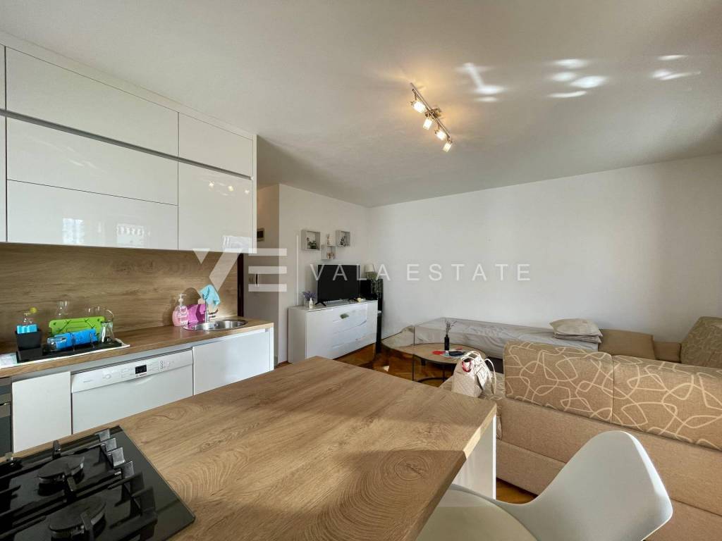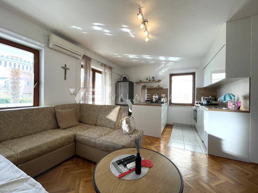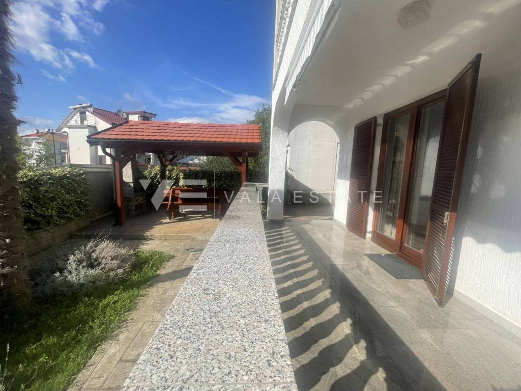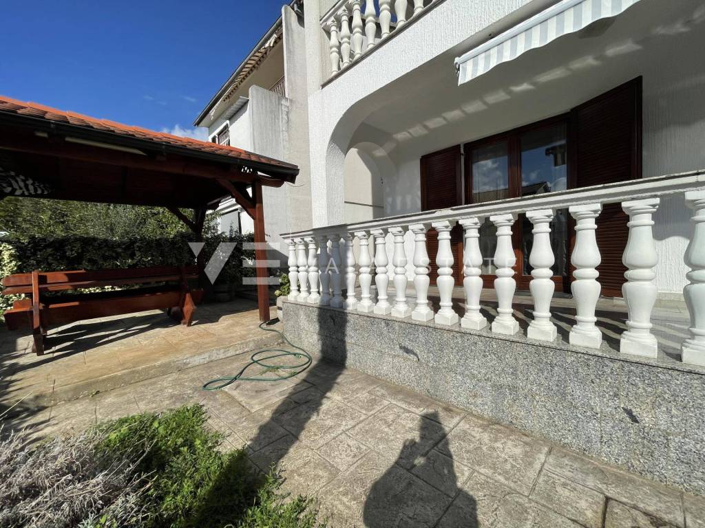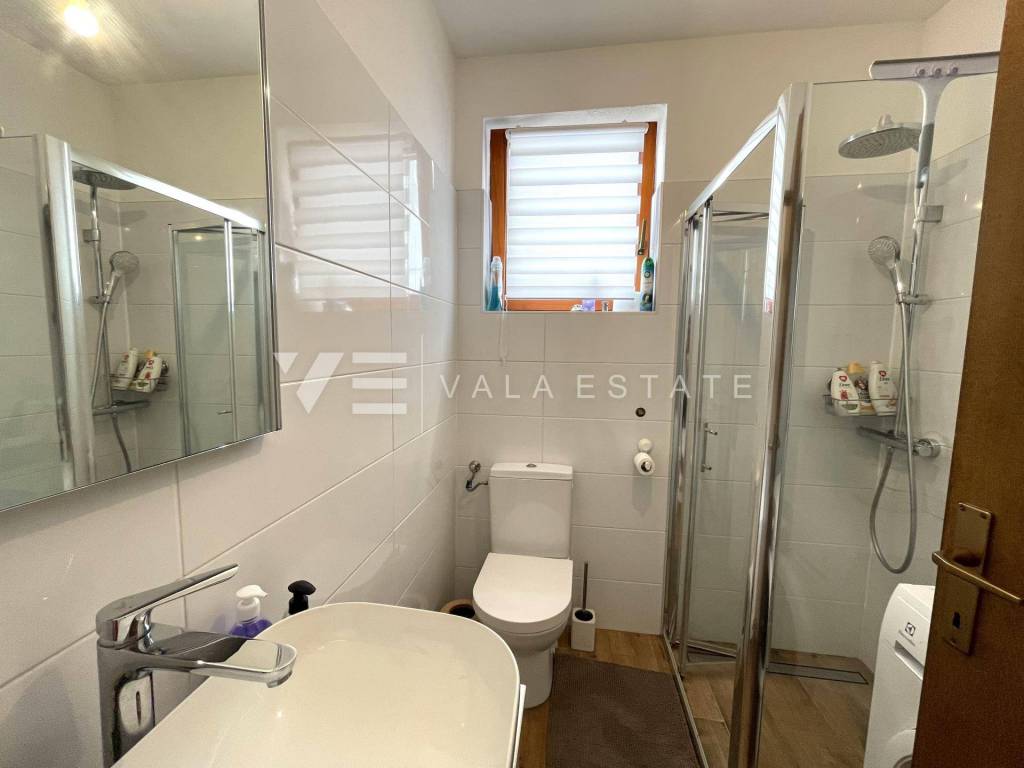 Real estate island of Krk, Malinska - a furnished apartment for sale in a quiet location near the sea and beautiful beaches. The apartment with a total living area of 40 m2 is located in the basement of an apartment house with eight residential units and consists of an entrance hall, bedroom, bathroom, kitchen with dining area and living room with access to a covered terrace and a landscaped garden of 97 m2 with a gazebo and barbecue. It has a storage room and one parking space in the shared courtyard of the house. It is being sold fully furnished, air-conditioned, has wooden joinery and proper documentation and is ready to move in. Due to its location, it is an excellent opportunity for own use or for tourist rental.