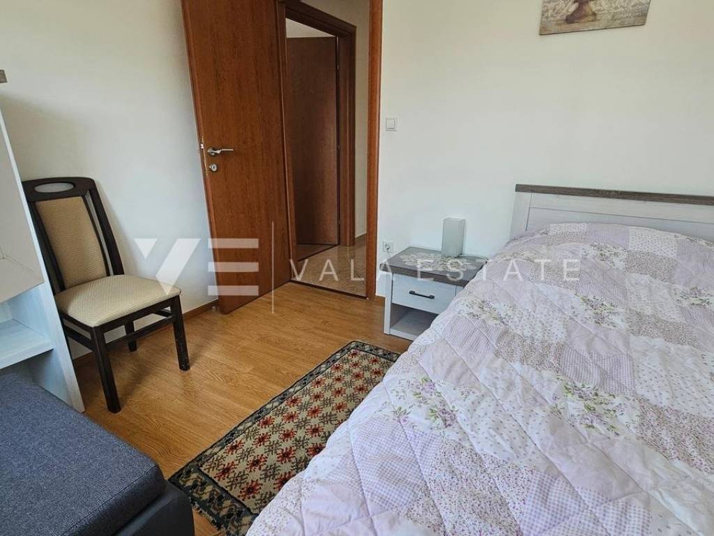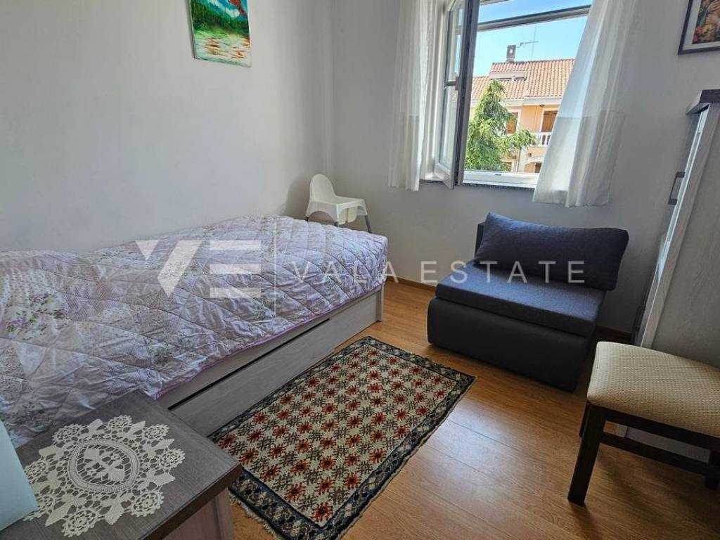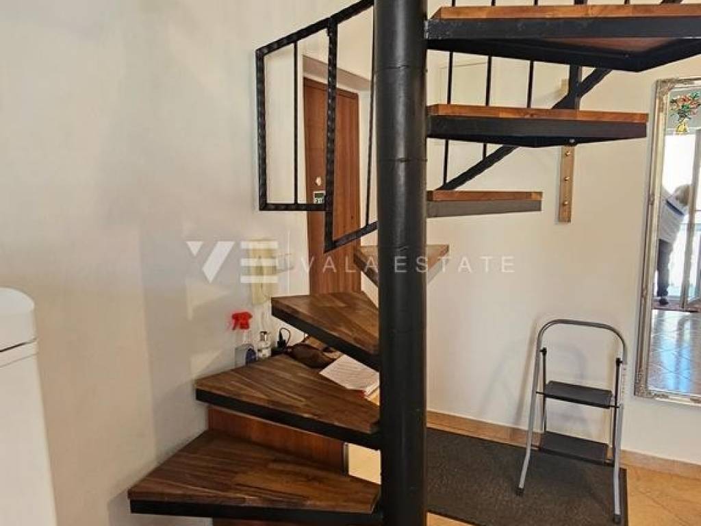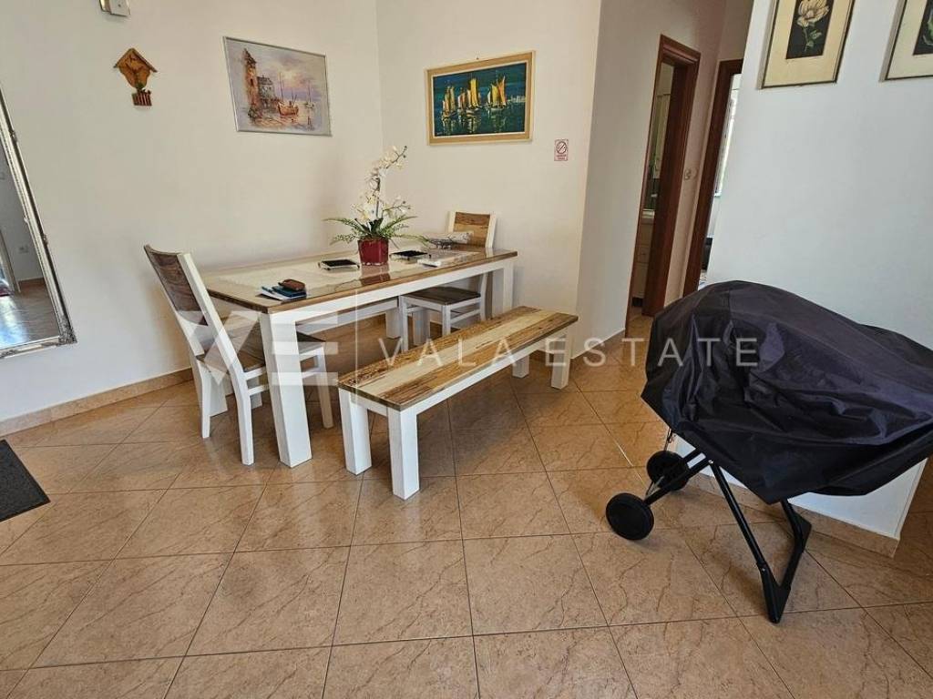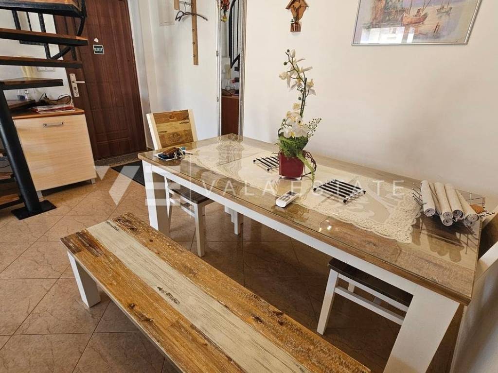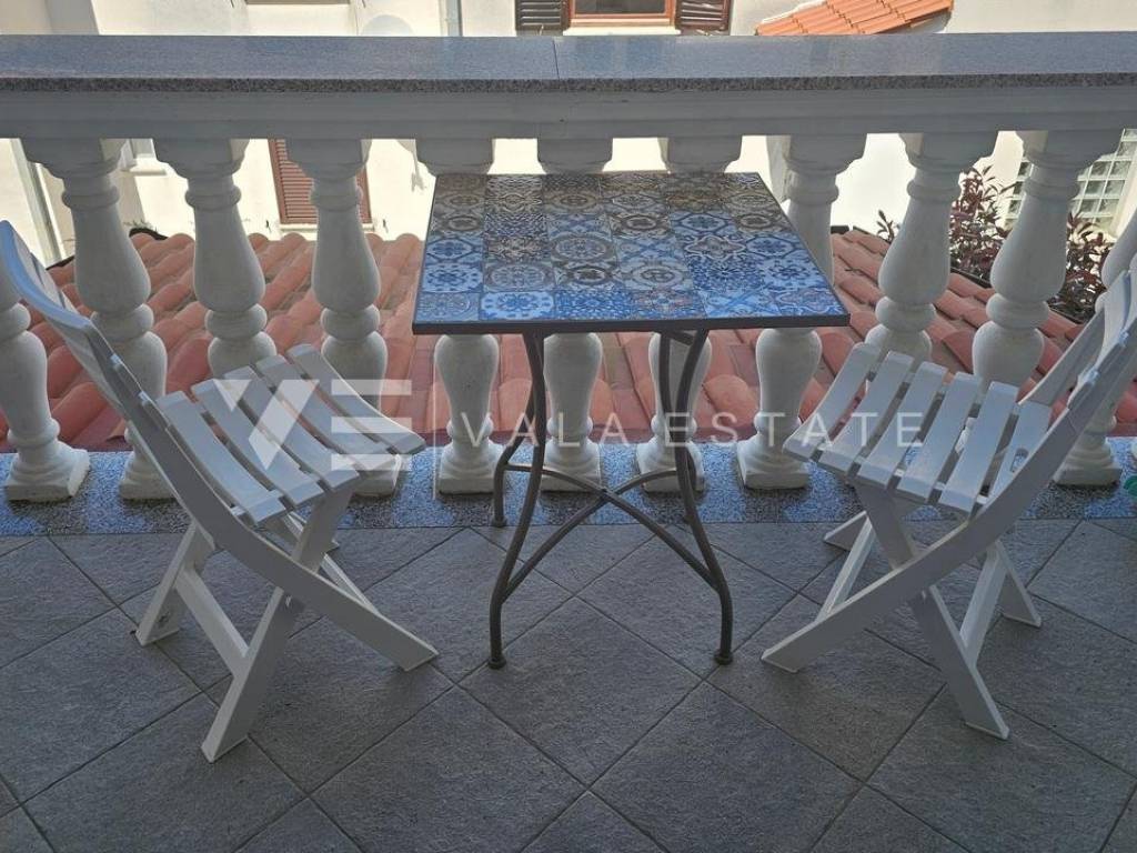 Real estate island of Krk, Soline bay - for sale is a comfortable two-storey apartment on the first floor of a multi-family house in a prime location just 120 m from the sea, beautiful beaches and near the town center. The total living area of 84 m2 is distributed on the first floor, which includes an entrance area, bathroom, two bedrooms and a kitchen with a dining area with access to a covered balcony overlooking the sea, and a high attic connected by internal stairs with a living room, bedroom and bathroom. It has one parking space in the shared courtyard of the house. The apartment is of high quality construction and equipment, is sold fully furnished, air-conditioned, has PVC joinery, neat documentation and is ready to move in. Due to its location, it is an excellent opportunity for personal use or for tourist rental.