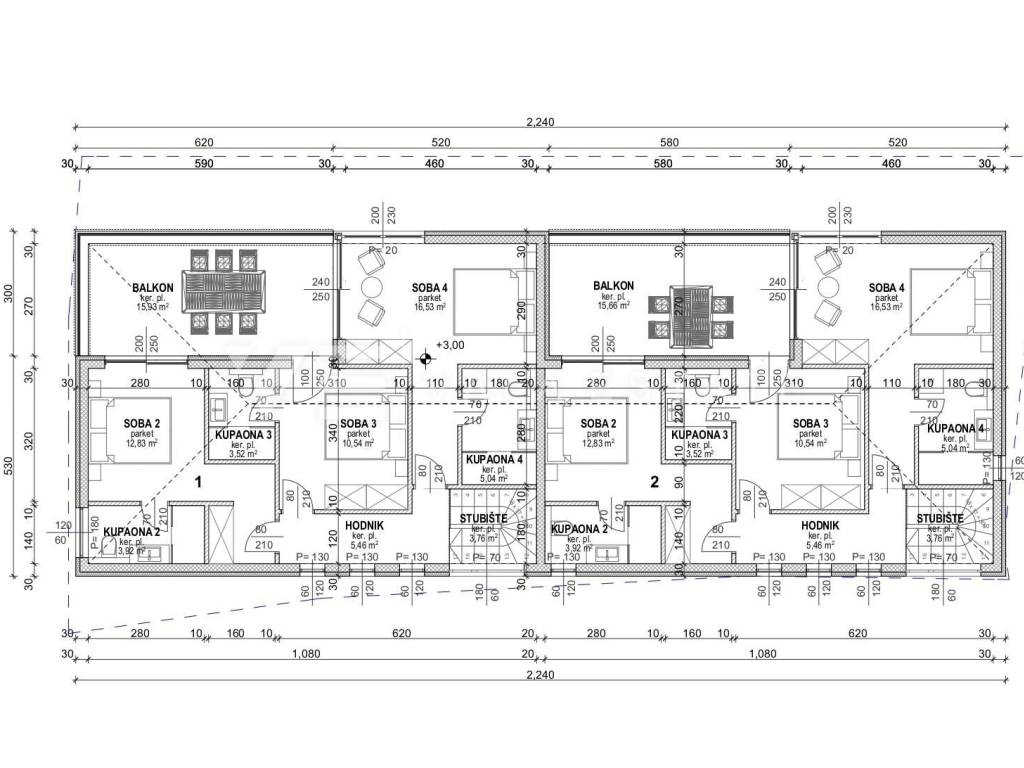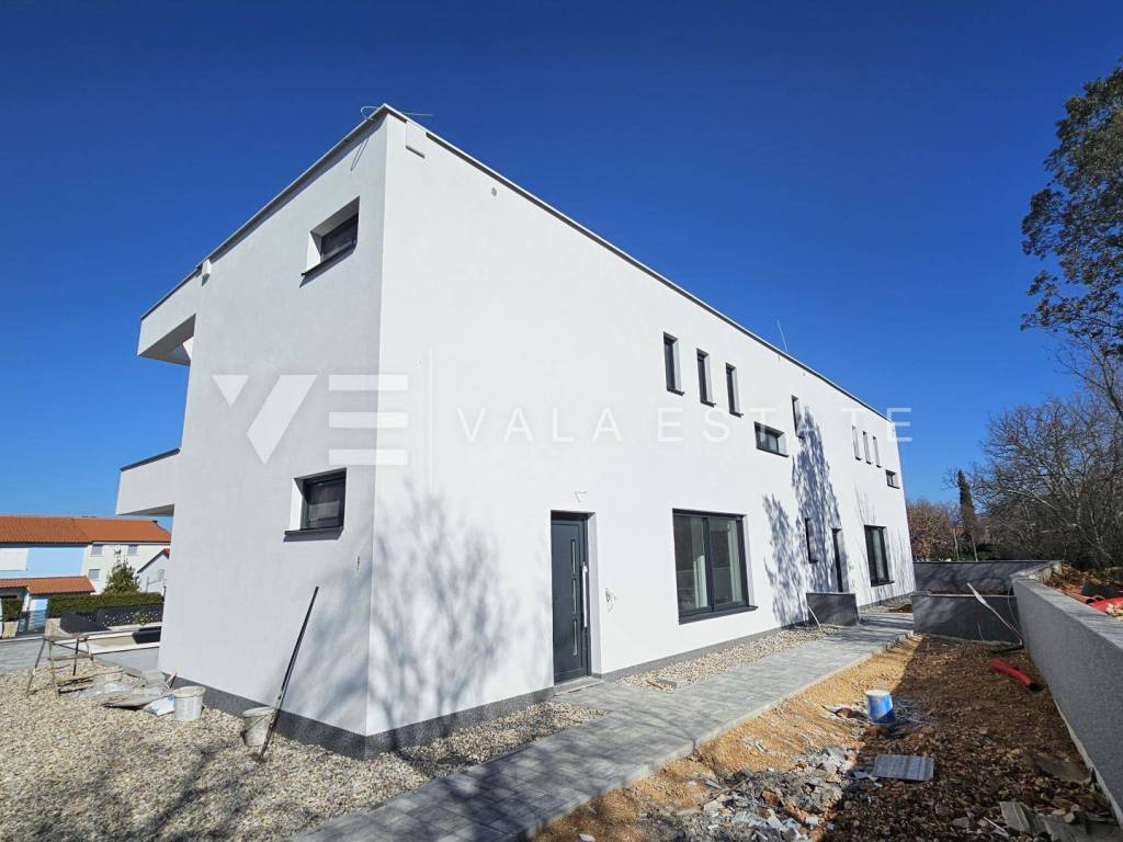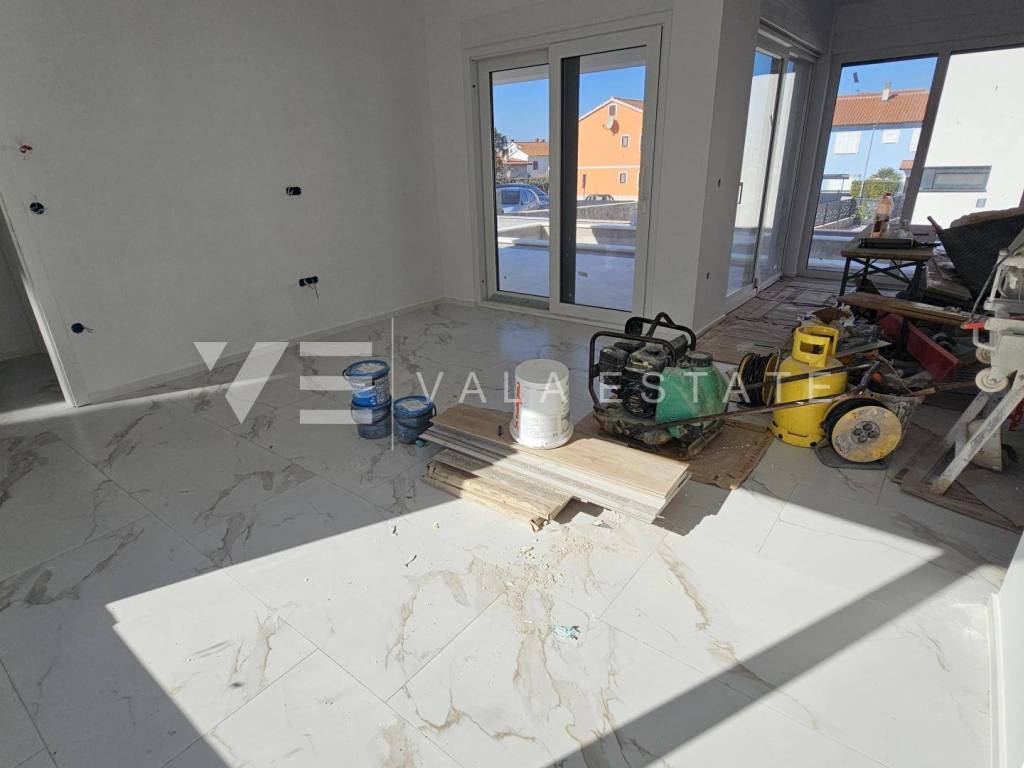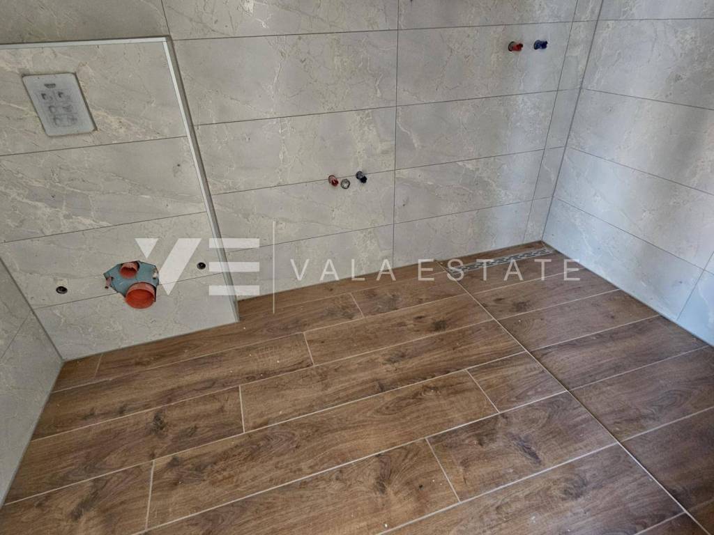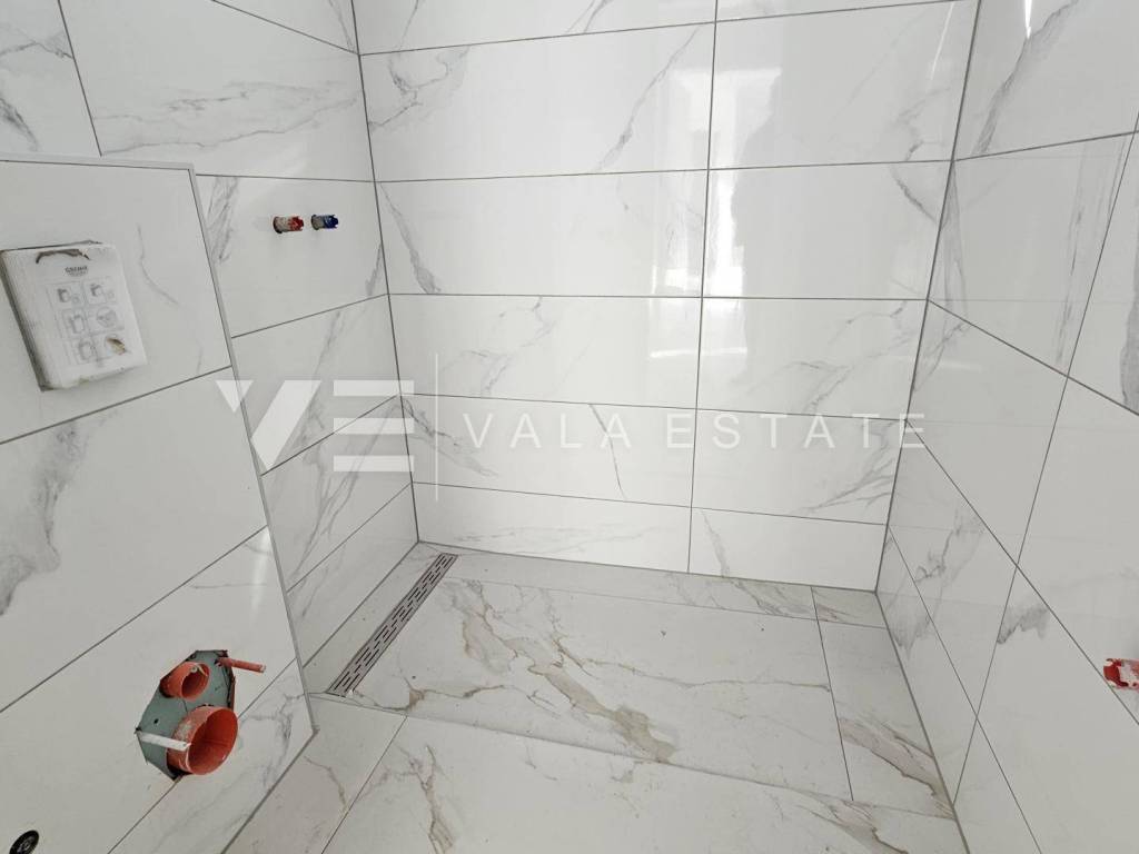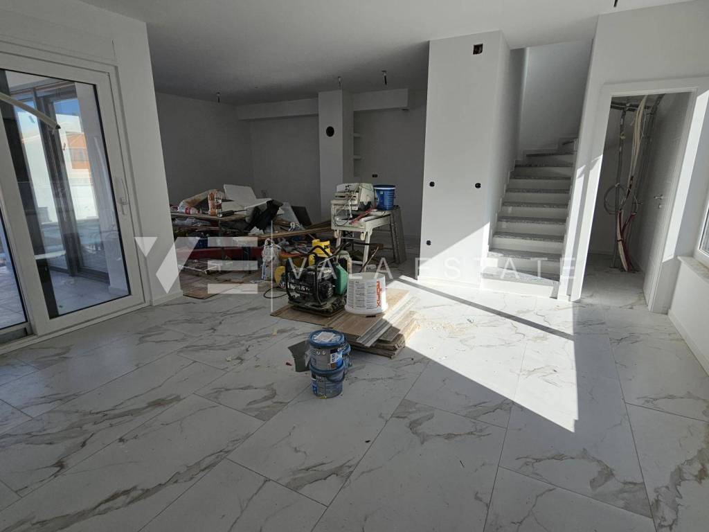 Real estate on the island of Krk, Malinska - a new semi-detached house with a swimming pool and sea view in a prime location is for sale. The house is spread over two floors, covering a total of 143 m2 of living space. The ground floor has an entrance hall, toilet, bedroom, kitchen and dining area, as well as a living room with access to a covered terrace and garden. On the first floor there are three bedrooms, each with its own bathroom and access to a terrace with a sea view. The beautifully landscaped garden has a swimming pool with a sundeck, a summer kitchen and space for two parking spaces. It is worth noting additional features - quality materials and equipment that include high-quality ceramic floor coverings, quality sanitary ware, multi-split air conditioning, underfloor heating with a heat pump, installed high-quality PVC joinery and security doors. The property is currently under construction, and the planned completion is expected in mid-2025. It is located in an attractive location near beautiful beaches and the center with all necessary amenities. This property is subject to VAT.