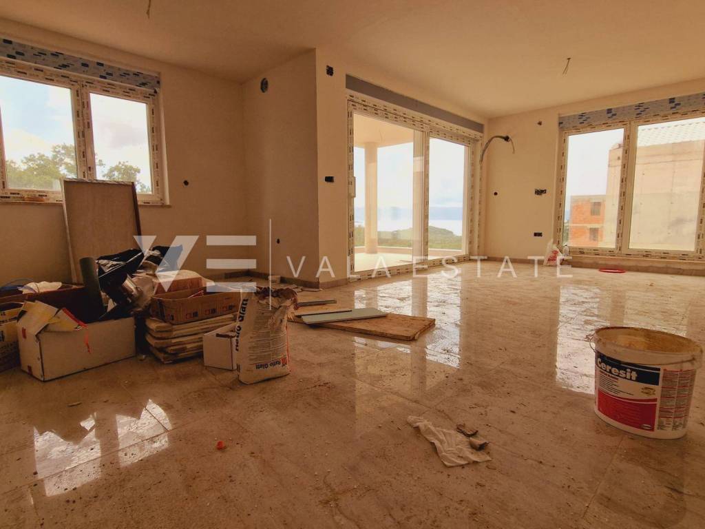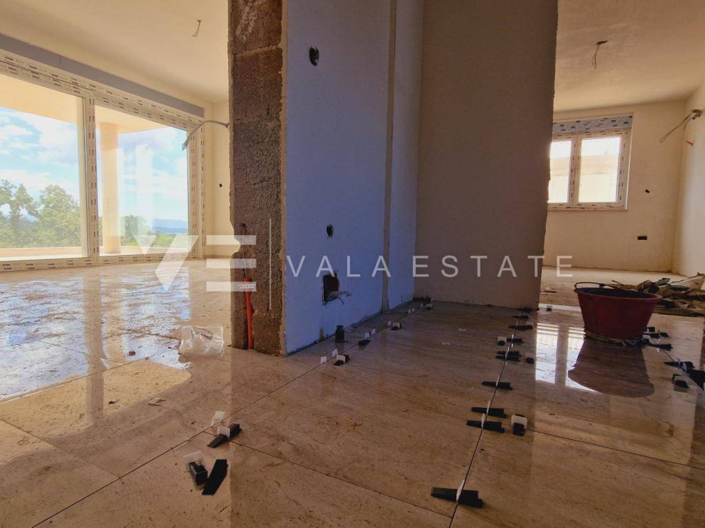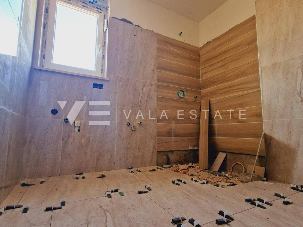 Real estate Island Krk, Njivice - for sale is an apartment with an excellent layout on the first floor of a new semi-detached building consisting of a total of four residential units. The apartment has a living area of 68.14 m2 and consists of two bedrooms, one of which has access to the terrace, bathroom, toilet, kitchen, dining room and living room with access to a large covered terrace with a view of the sea. It has one parking space in the common courtyard of the building. Quality materials and equipment are used for construction, including ceramic floor coverings, quality sanitary facilities, room air conditioning, underfloor heating, built-in high-quality PVC joinery and security doors. It is located in a quiet location only 500 m from the sea and beautiful beaches. The property is currently under construction, and the planned completion is expected at the end of 2024.