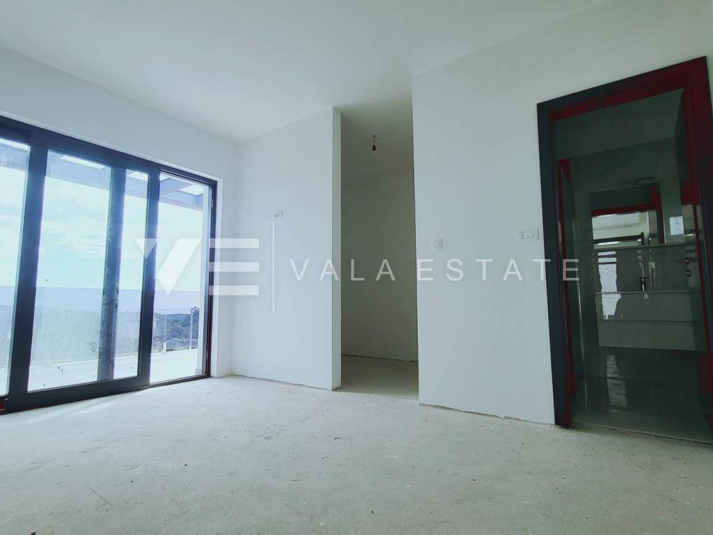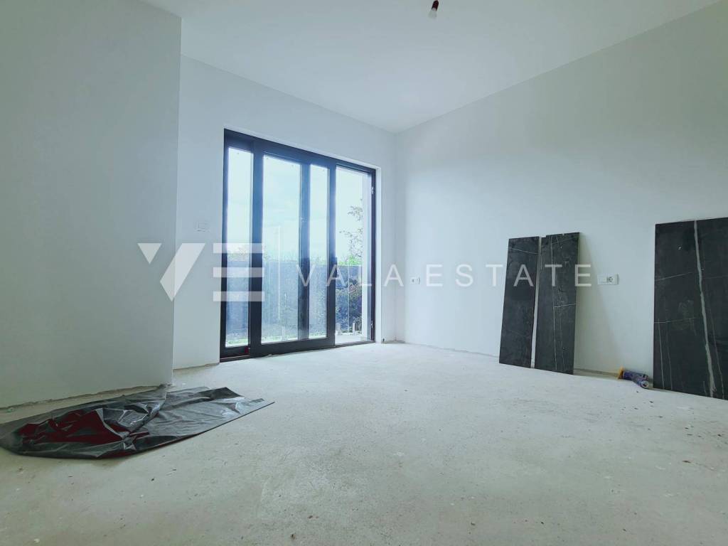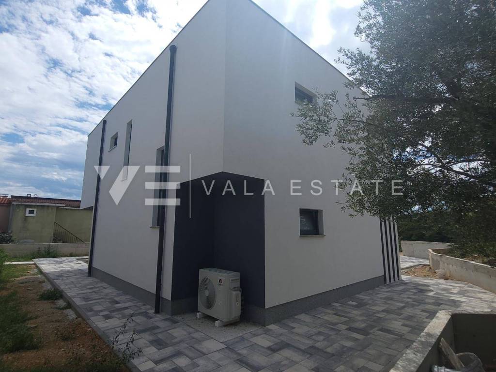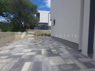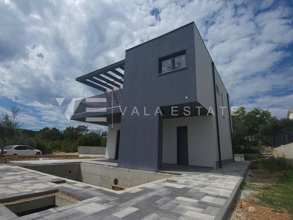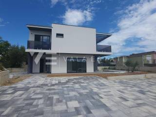Real estate on the island of Krk, around the town of Krk - in a quiet environment of family houses and nature, a new detached villa for sale with a beautiful view of the sea. The villa, located on a plot of 518 m2, is spread over two floors with a total of 144.30 m2 of living space. On the ground floor there is a storage room, a toilet, a kitchen and a dining area, as well as a living room with an exit to the terrace and a landscaped garden with a swimming pool and a sunbathing area. On the first floor there are three bedrooms, each with its own bathroom, two of which have access to a terrace with a panoramic view of the sea. Top quality materials will be used for the construction, floor coverings in a combination of parquet and ceramics, PVC/ALU carpentry and walls with three-layer glass, underfloor heating in the ground floor and bathrooms, and other high-quality features. Exterior decoration and Mediterranean vegetation will give the villa privacy, and there are two parking spaces in the fenced garden. The location is quiet, approx. 1500 m from beautiful beaches.