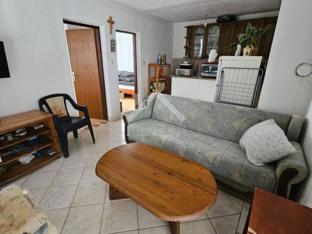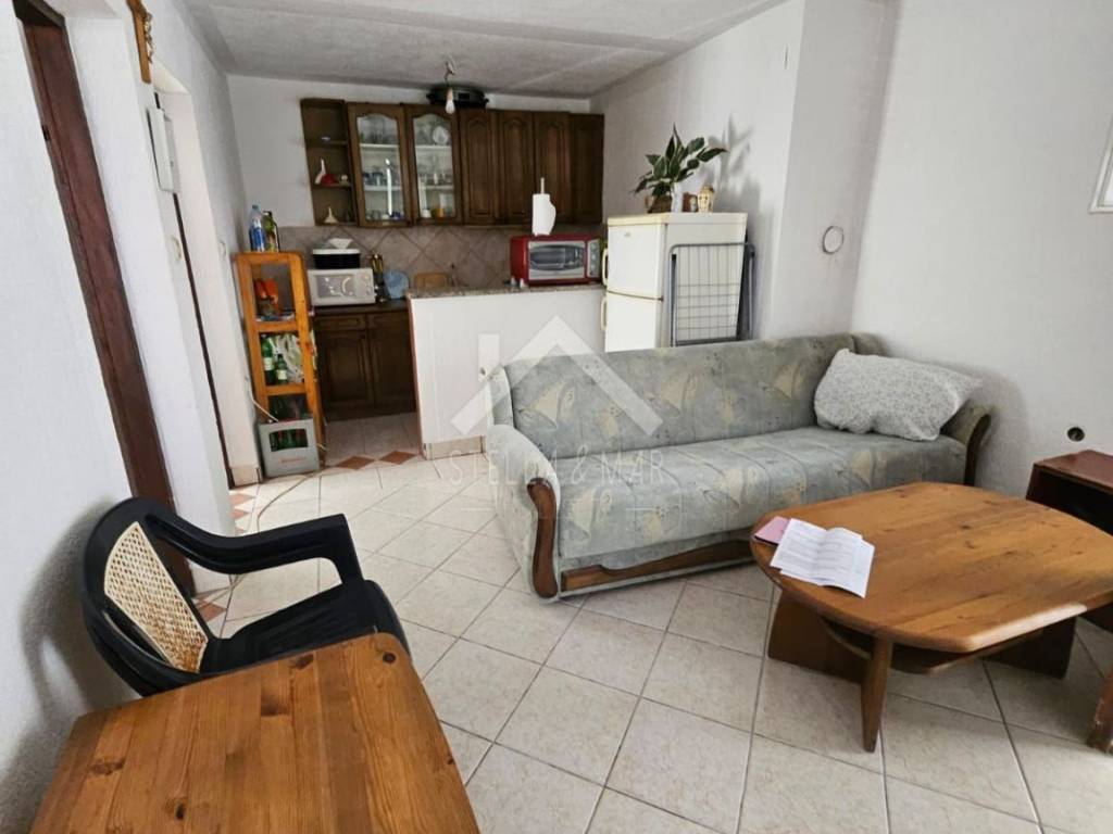 Apartment for sale in a quiet part of the island with a sea view. The living area of the apartment is 35m2, while the terrace is 20m2. It consists of two bedrooms, a kitchen with a dining room and a living room, and a bathroom. It is divided into floors, has its own electricity connection and its own water tank.