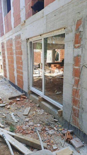 It has a ground floor and an upper floor. On the ground floor there is a living room with kitchen and dining room, a bathroom and a covered terrace. An internal staircase leads to the first floor where there are three bedrooms and a bathroom.