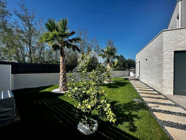The yard is very nicely decorated (it has automatic irrigation of the lawn), as part of it there is a barbecue and an outdoor kitchen, a swimming pool of 32 m2. Also, covered and uncovered parking where it is possible to park several vehicles.