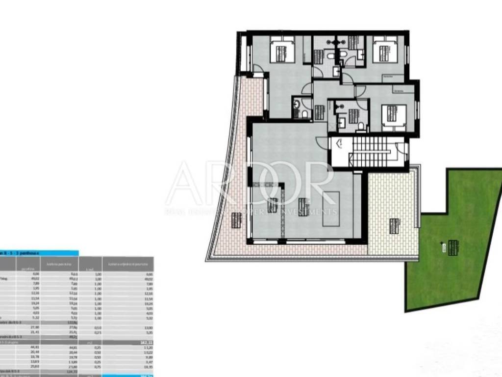 It is located on the second, top floor and consists of an open-concept living room, dining room and kitchen, three bedrooms, three bathrooms and a guest toilet. The open-concept layout seamlessly connects the indoor and outdoor spaces, perfect for relaxation.