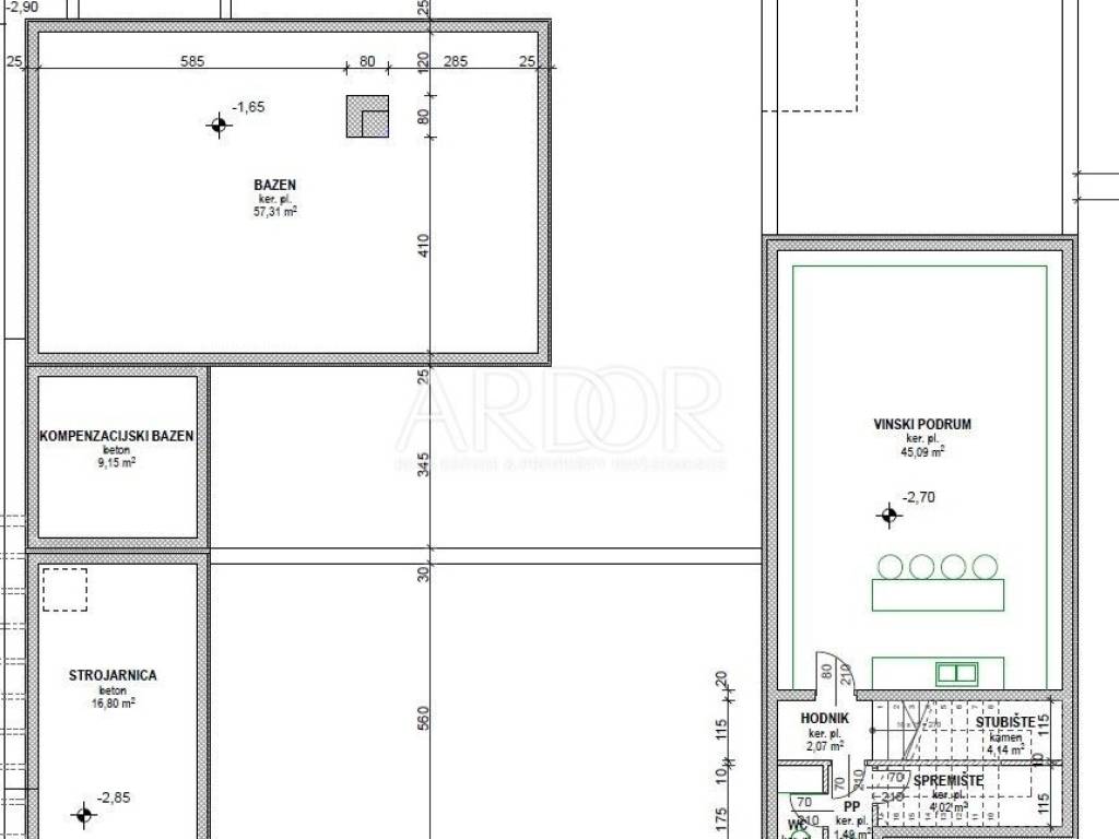 The basement further enriches this luxurious villa - it contains a fitness area, a tavern and a 45 m wine cellar.