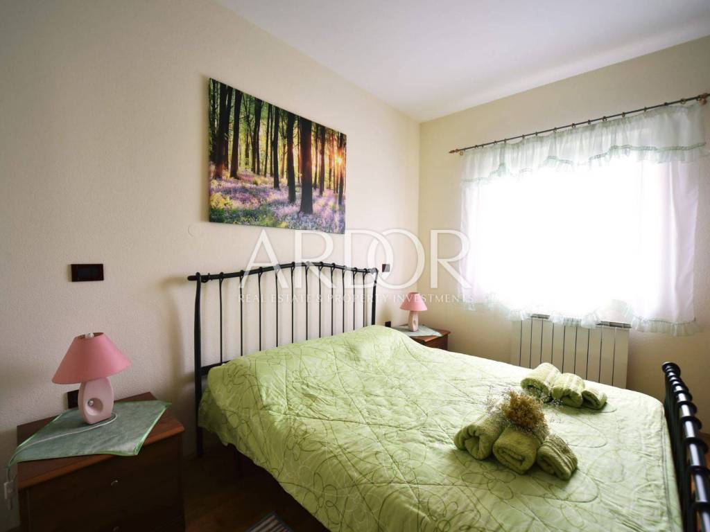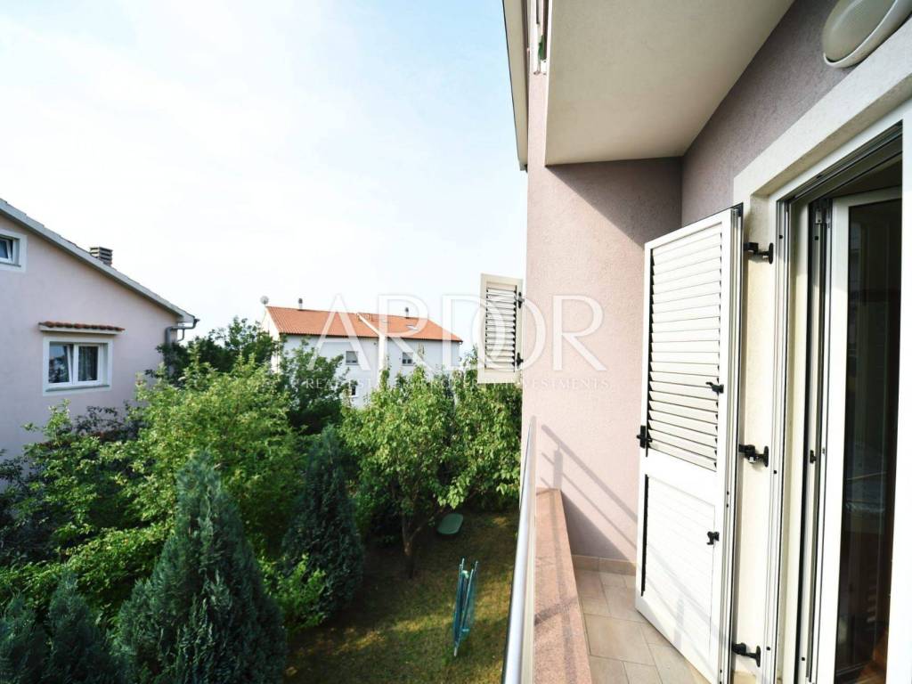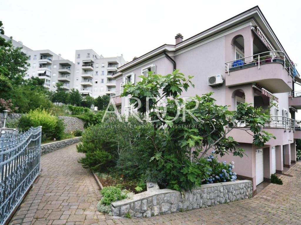 RIJEKA Hosti, apartment for rent, located in an urban villa, 90 m2 + 18 m2 garage from which the internal stairs lead to the apartment. It consists of 3 bedrooms or, if necessary, a bedroom + study, since it is empty of furniture, two bathrooms, one larger with a jacuzzi and a smaller one with a shower. The living room opens onto a balcony overlooking the sea. Fully furnished kitchen with dishes and pantry. The building is located in a beautiful and quiet street. The apartment is rented for a long time from 15.8. 2022, exclusively for business people or a couple without pets.