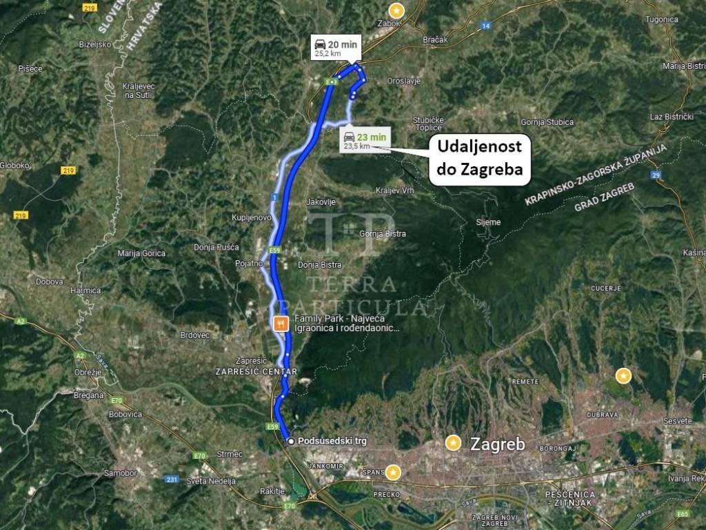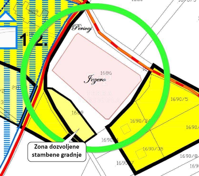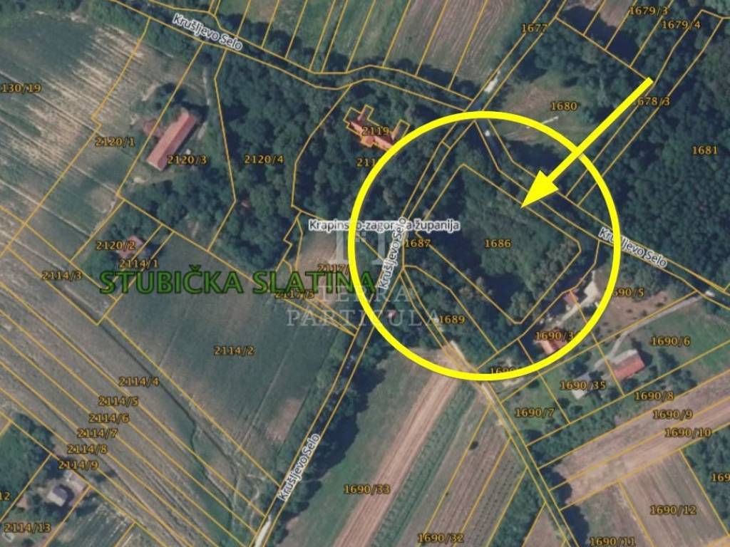 Na prodaju nudimo zemljište površine 10.500 m² od čega je u građevinskoj zoni 1.439 m² dok je ucrtano jezero površine 5.337 m² i oko njega čestica naziva perivoj površine cca 3.700 m². Plin, struja i voda su u neposrednog blizini ponuđenog zemljišta. Adresa građevine (Kurija Kaniža) u čijoj se blizini ponuđeno zemljište nalazi je Krušljevo Selo 234, Oroslavje. Udaljenost do naplatnih kućica Zabok/Oroslavje je 2 km.