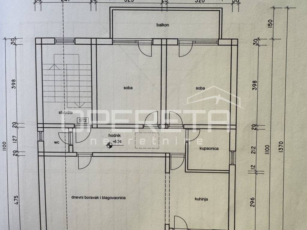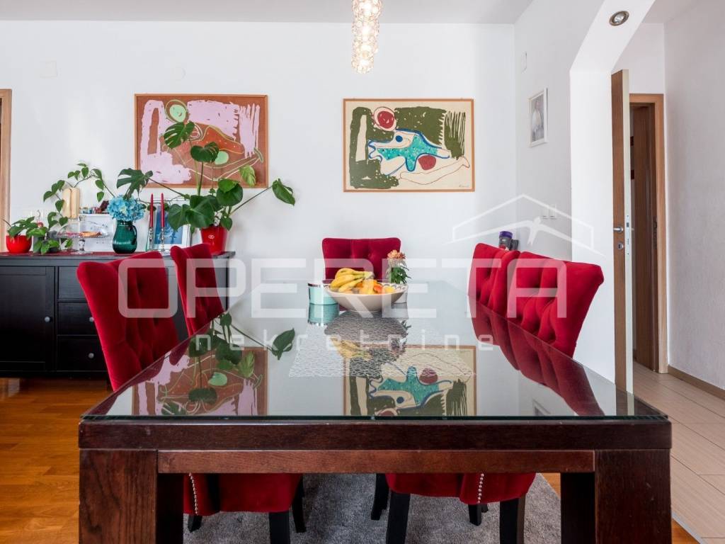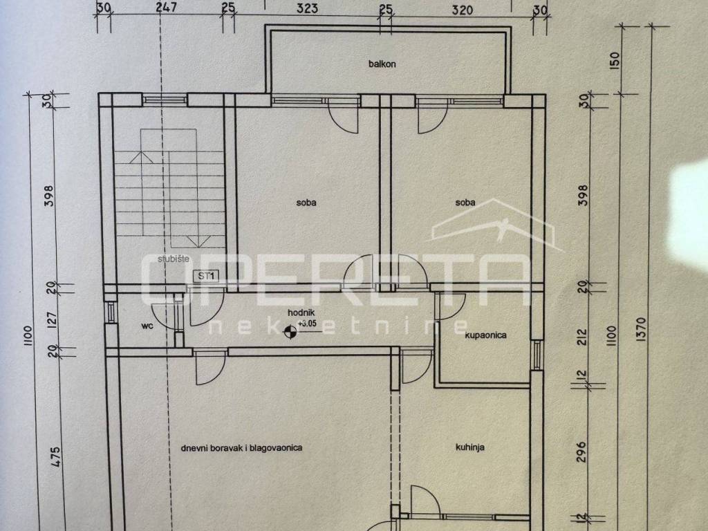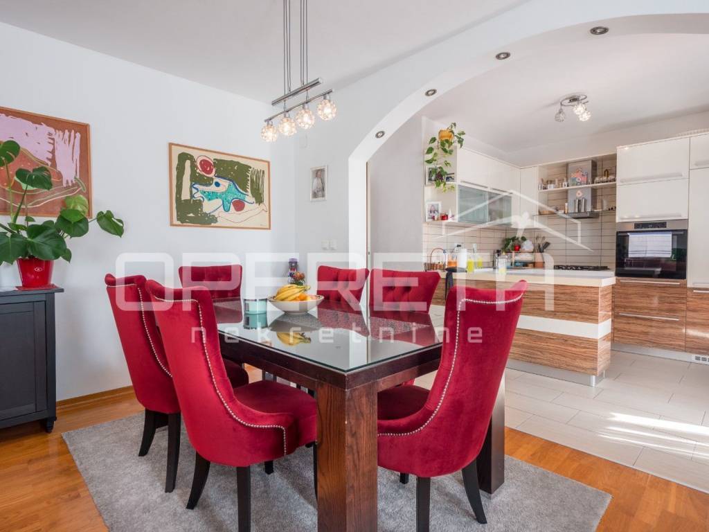 1. KAT - uređen stan sa open space dnevnim boravkom sa blagovaonicom i kuhinjom te izlazom na loggiu, 2 spavaće sobe, kupaonice i wc-a, te balkona