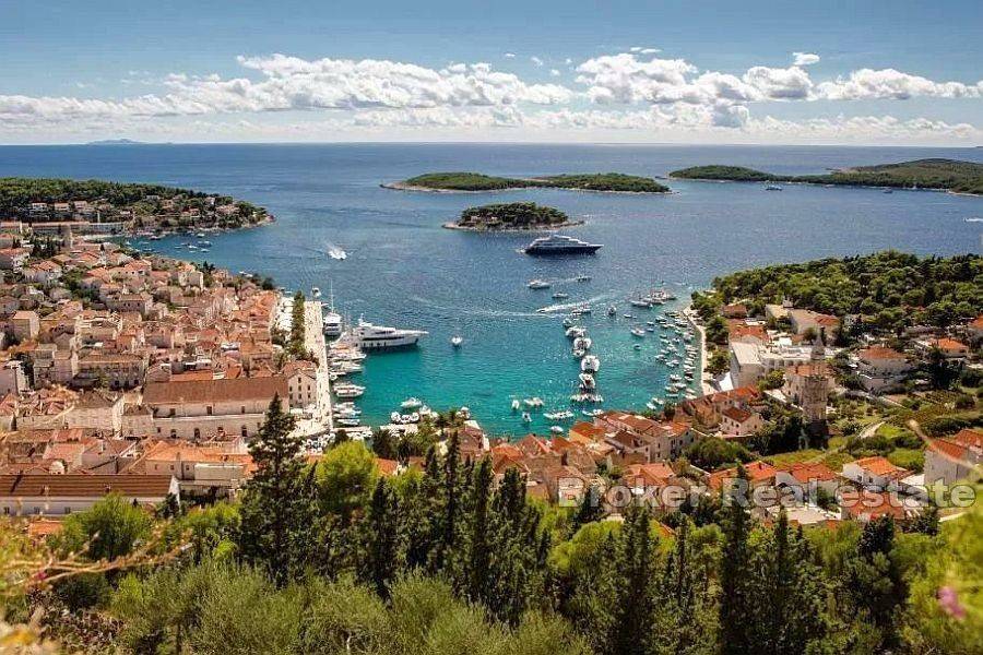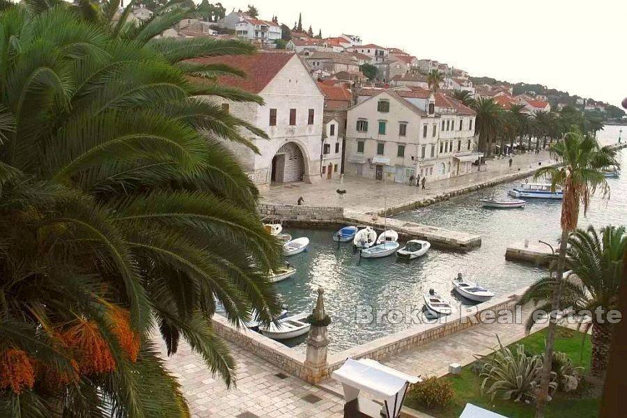 Elegant two bedroom apartment with high ceilings, for long term rent, located in an idyllic position on the main promenade of town Hvar, on the third floor (last) of a small residential and commercial building, with a total living area of 63 m2. The apartment consists of a kitchen and living room, 2 bedrooms and a bathroom, and has two windows overlooking the sea and the beautiful Hvar waterfront. Quite an interesting offer from a very attractive location, since the apartment is well maintained and tidy, fully equipped and furnished.