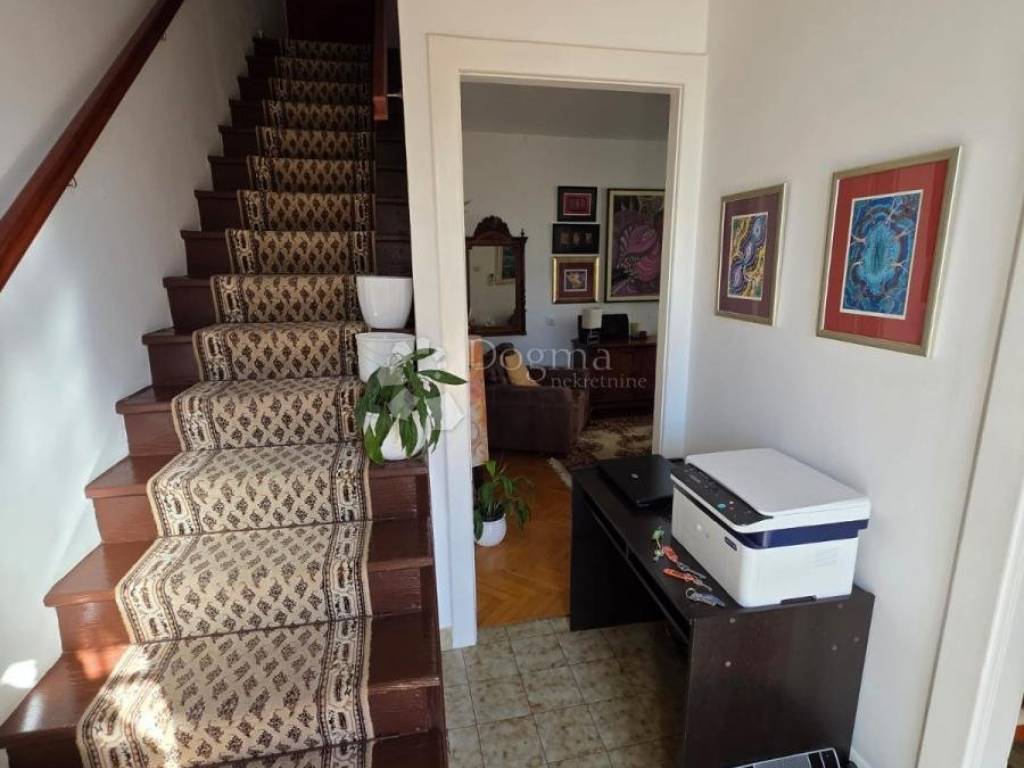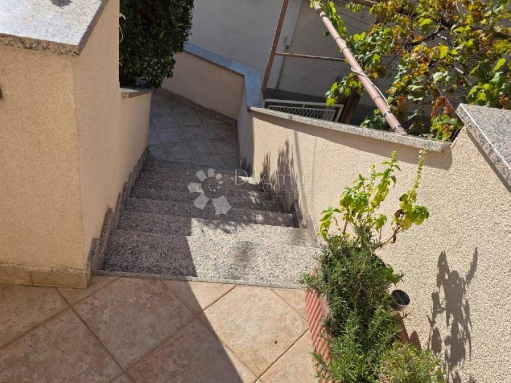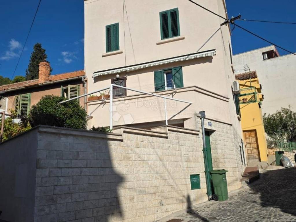 MAIN HOUSE (4 floors) a total of 142 m of living space + terraces The house was built in 1940 and completely renovated in 2013 (new installations, facade, PVC windows with mosquito nets, roof, front door). Heating/cooling is via inverter air conditioners and electric heaters. The apartments are not condominiums, but there is a possibility. The electricity meters are separate; there is one meter for water. 1. GROUND FLOOR apartment 40 m + 17m2 yard Consists of: 2 bedrooms bathroom with toilet kitchen with dining room pantry yard laundry room additional storage 2. FIRST AND SECOND FLOOR duplex apartment 82 m Consists of: 2 bedrooms bathroom with toilet kitchen with dining room living room library / study hallway terrace 3. FLOOR unfinished space 20 m + terrace 25 m Space intended as a summer kitchen or studio apartment. The terrace offers a beautiful panoramic view of the sea and the city.