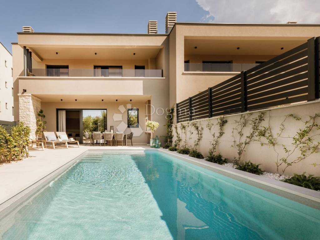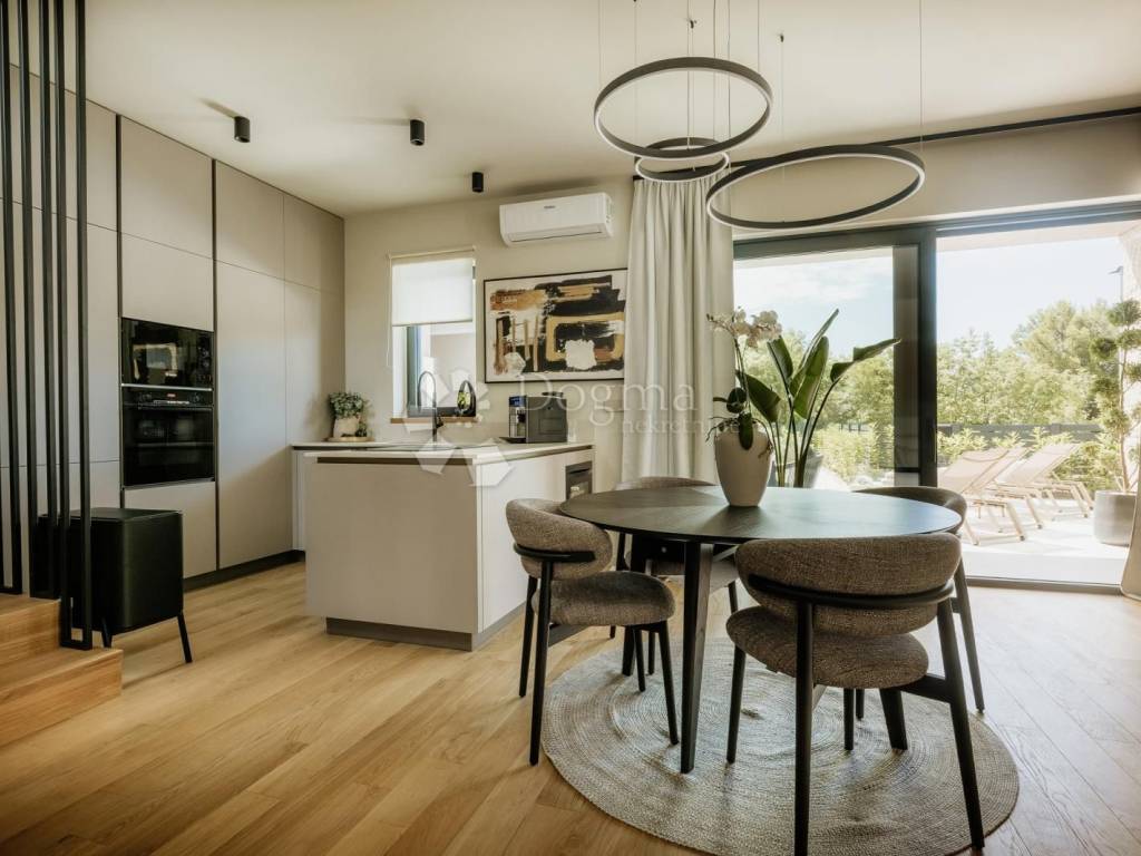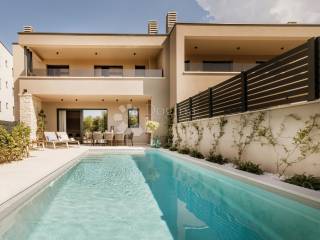 Located in the quiet and attractive Istrian village of Vabriga, this elegant modern villa is the perfect property for those looking for a combination of comfort, privacy and proximity to beautiful beaches. Surrounded by Mediterranean greenery and just a few minutes from the coast, the villa offers the perfect balance of relaxation, functionality and luxury - ideal for living, vacation or investment. On the ground floor there is a spacious open-concept living area that includes a cozy lounge area with a fireplace, a smart TV, a dining area and a fully equipped modern kitchen. On the same floor there is also one of the three bedrooms, elegantly decorated and with a private bathroom. Upstairs there are two additional spacious bedrooms, both with en-suite bathrooms and access to a shared balcony. The balcony, equipped with a comfortable seating set, offers a view of the sea and creates the perfect atmosphere for relaxation at any time of the day. The exterior of the property offers a heated saltwater pool surrounded by sun loungers, a landscaped garden and a covered terrace with a dining area - ideal for enjoying the outdoors. There is also a barbecue area and a private parking lot with a charging station for electric vehicles. Main features of the property: Three bedrooms, each with its own bathroom Modern living area and fully equipped kitchen Heated saltwater pool and landscaped garden Air conditioning in all rooms Smart TV equipment and streaming capabilities Private balcony with sea view Parking with EV charging station Quiet location near the sea The surrounding area offers well-maintained beaches, cycling and hiking trails, restaurants, as well as famous attractions such as Aquapark Istralandia and the old town of Poreč. The location is highly sought after and suitable for year-round living, as well as for investment in tourist rentals. This modern Istrian villa represents an exceptional opportunity to purchase a luxurious, fully equipped property in one of the most desirable locations on the west coast of Istria. For more information, please contact us: STEFANO PERUŠKO REAL ESTATE AGENT Mobile 099/721-0395 stefano.perusko@dogma-nekretnine.com KRISTINA BENČIĆ Real Estate Assistant Contact: +385981923830 kristina.bencic@dogma-nekretnine.com