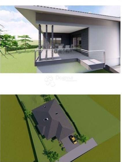 Vlasnik posjeduje idejni projekt kuće prizemnice prilagođen terenu i lokaciji. Idelano za izgradnju montažne niskoenergetske kuće.