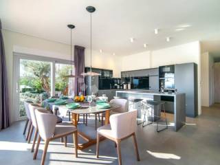 The entire villa stands out with its refined design, high-quality modern furniture, and carefully selected materials. It is equipped with underfloor heating via heat pump and air conditioning in all rooms. There are three parking spaces available.