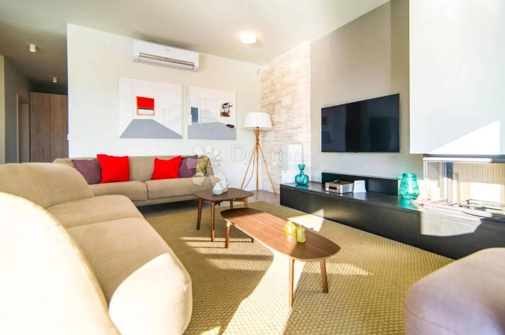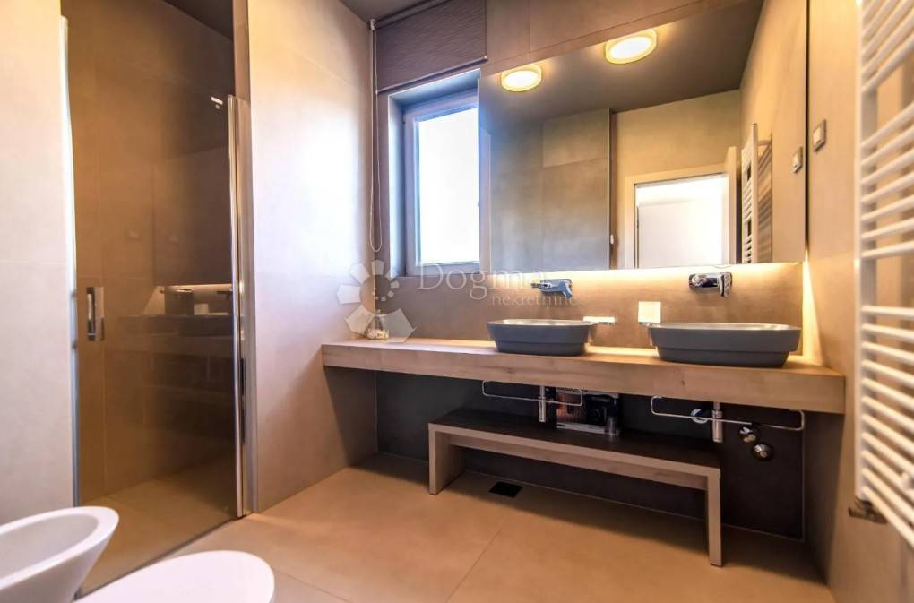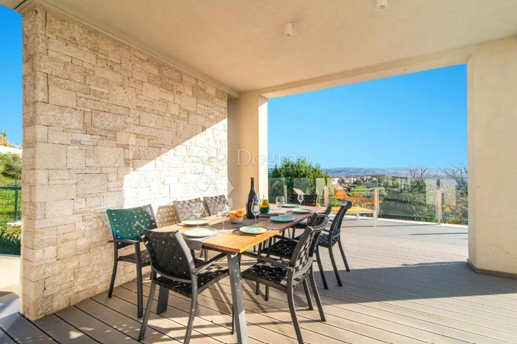 In a peaceful part of the Istrian countryside, not far from Novigrad and Umag, lies this elegant villa with a net area of 227.6 m, situated on a 623 m plot. Positioned on a gentle hill, it offers a spectacular panoramic view of the sea and the surrounding landscape.