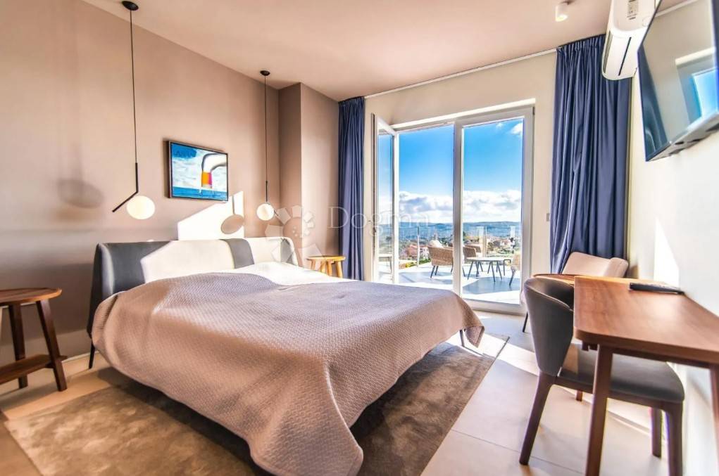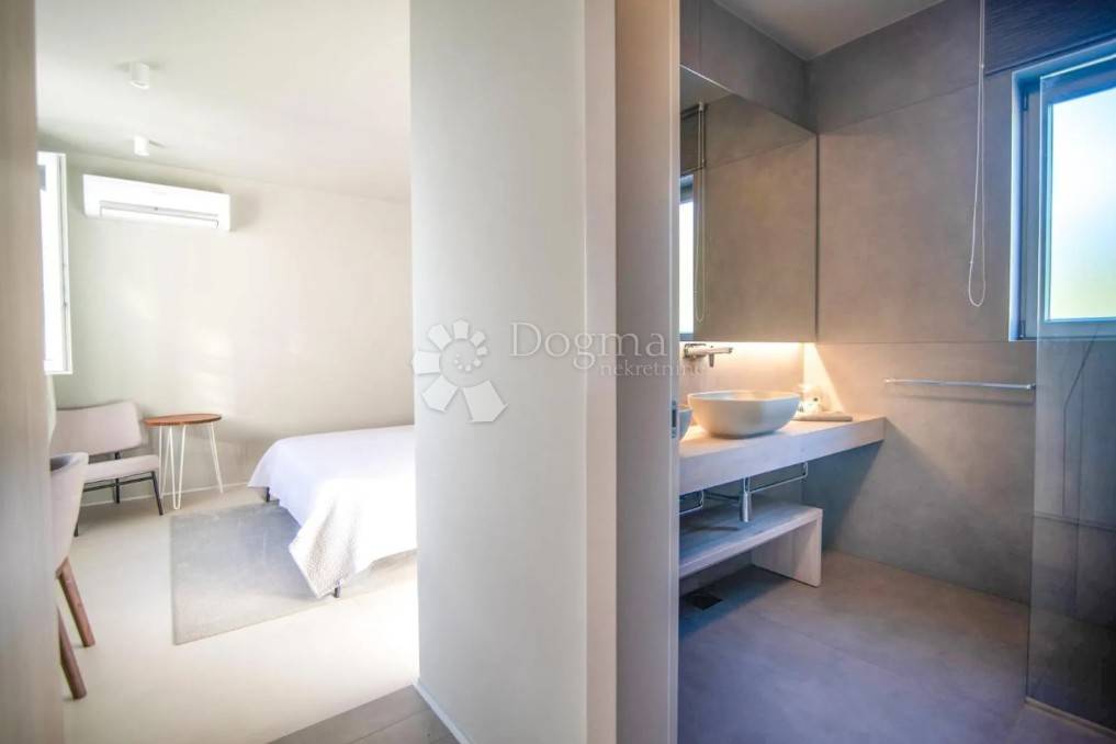 The villa offers four elegant bedrooms, each with its own en-suite bathroom. One bedroom is located on the ground floor, while the remaining three are upstairs. From the upper floor, you can enjoy a breathtaking sea view, with one of the bedrooms featuring a private balcony.