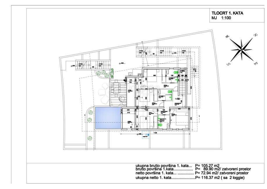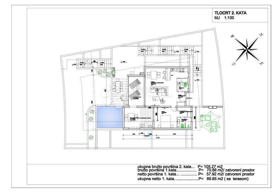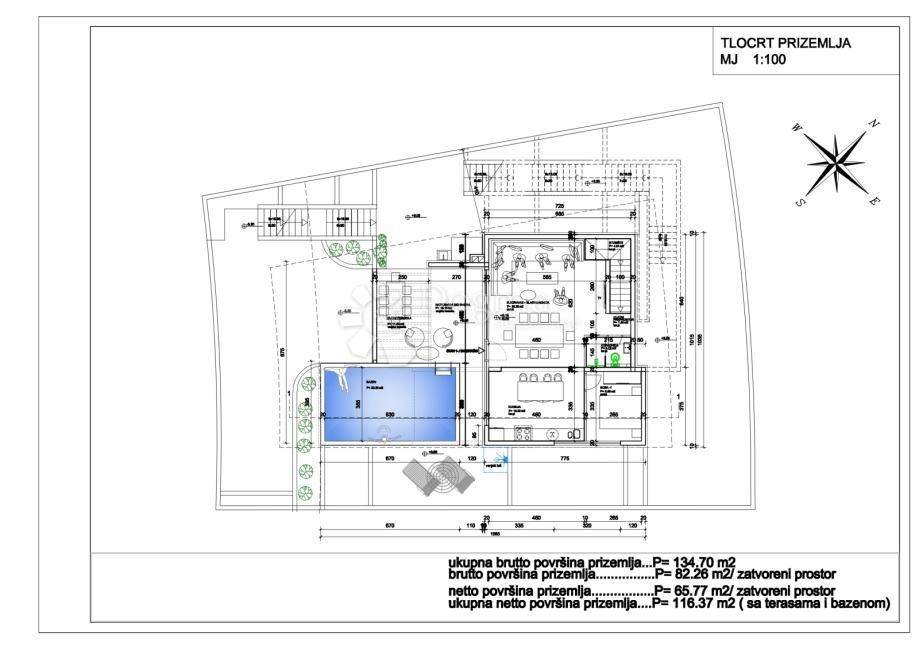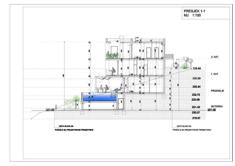 Zemljište ima površinu od 449 m2, a planirana vila ima 353,90 m2 stambene površine, raspoređene na četiri etaže, sa infinity bazenom od 26,47 m2.
