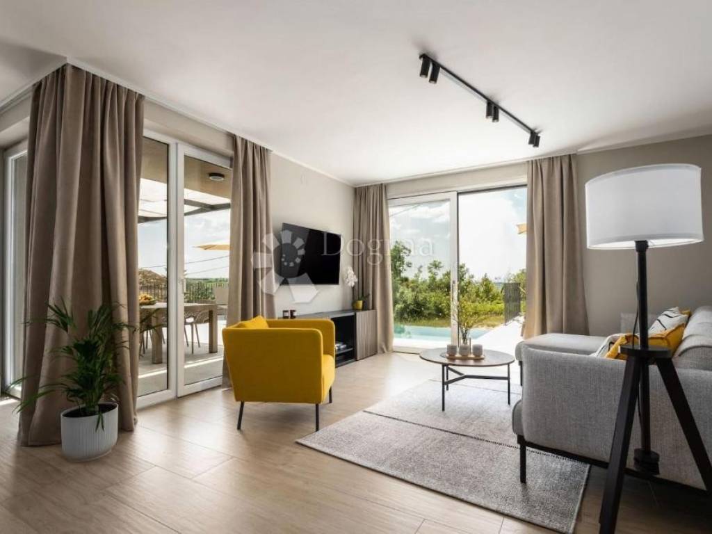 In a peaceful area near Buje, surrounded by greenery and Mediterranean scenery, lies this modern house with a total living area of 85 m and a 350 m garden. It combines contemporary design, high-quality construction, and comfort ideal for living or vacationing throughout the year.
