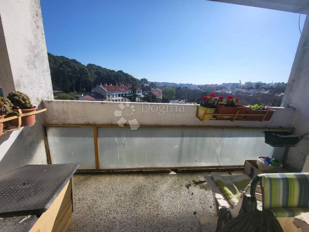 Just 250 meters from the Pula Arena and the very heart of the city, in a multi-storey building with an elevator, there is an apartment that offers an ideal opportunity for renovation according to your own wishes and needs. With an area of 72 m, it is located on the 7th floor and stands out with an excellent layout that offers many possibilities for redevelopment. It is currently organized as a one-bedroom apartment with a spacious bedroom, but with a minor conversion it is easy to get an additional room - without major construction work. Thanks to the functional floor plan, the apartment can easily be converted into a two-bedroom apartment, making it even more practical and attractive for living or renting. The space consists of an entrance hall, kitchen, living room, bathroom and two loggias that offer an open view of the city and the surrounding nature. It has been partially renovated - new PVC windows, new security doors, air conditioning and a new washing machine have been installed. The possibility of gas heating further increases comfort. The building offers excellent parking availability there are two large free public parking lots around the building, and paid parking is also available nearby, which is practical in the case of multiple vehicles. This property represents a great opportunity for all those who want to live in the center of Pula, with a view, functionality and potential that, with a little investment, can be turned into a modern city home or a tourist rental investment. For more information or to arrange a viewing contact us today! STEFANO PERUŠKO LICENSED AGENT Mobile 099/721-0395 stefano.perusko@dogma-nekretnine.com KRISTINA BENČIĆ Mobile +385981923830