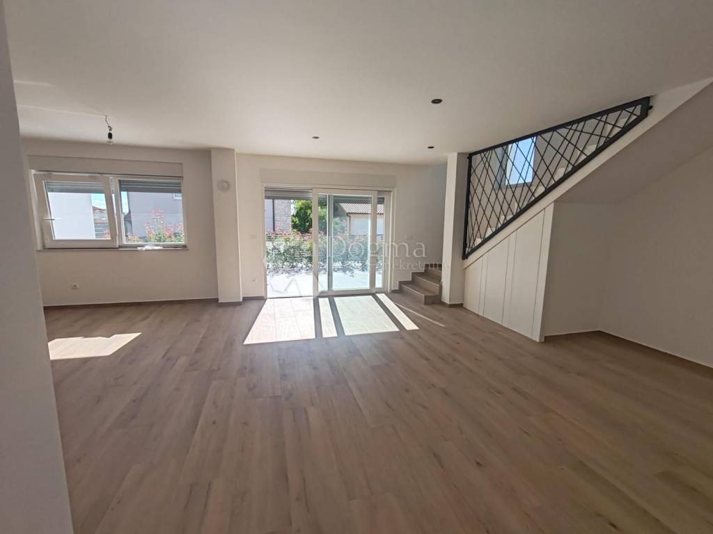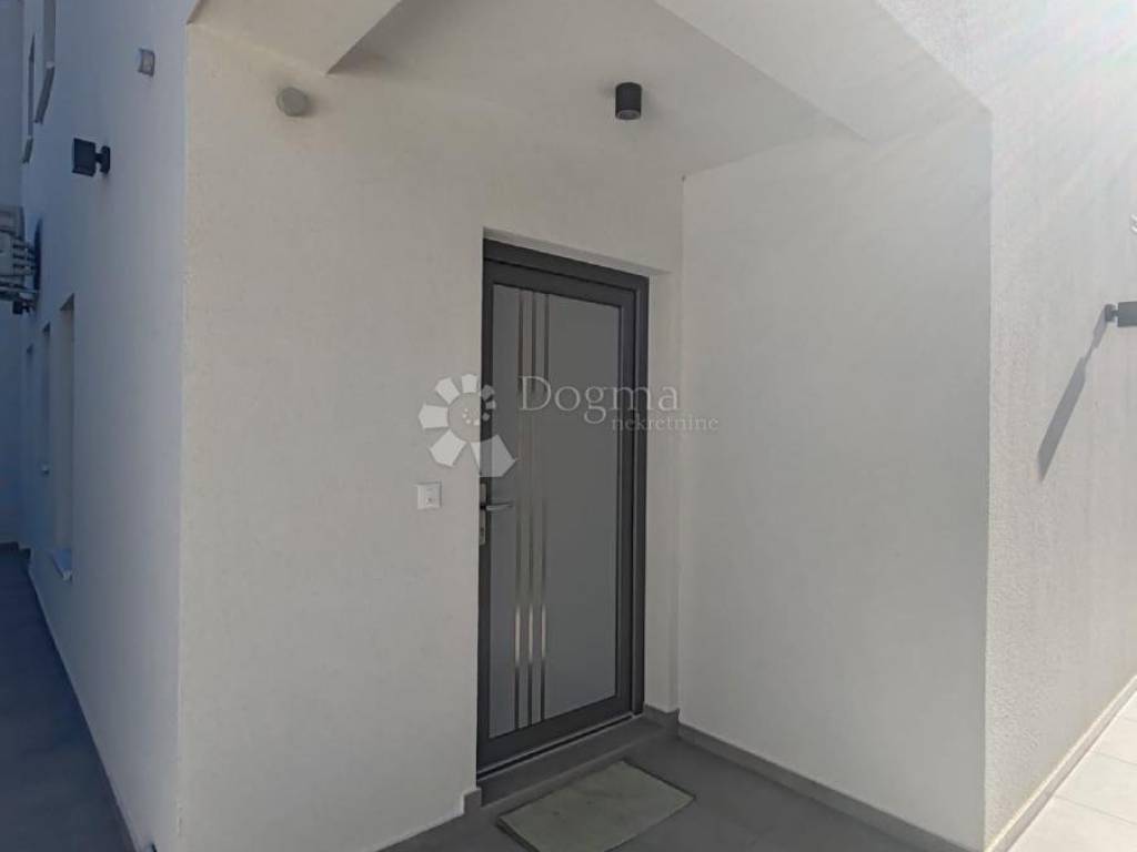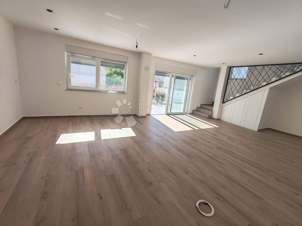 For sale: a newly built, completed and immediately move-in ready family house featuring modern architecture and an excellent layout, located in a quiet part of Vodice. The house is part of a semi-detached building and extends over two floors ground floor and first floor, with a total usable area of 162 m.