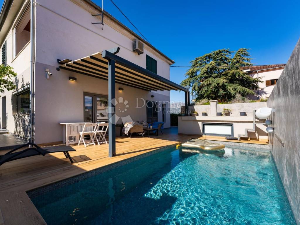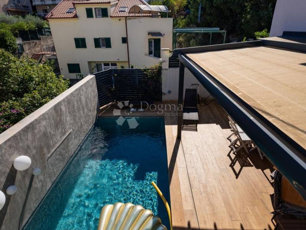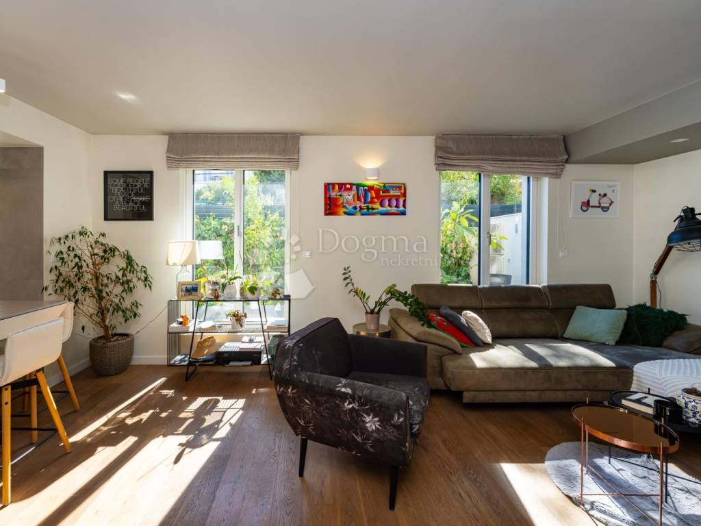 In one of the most desirable locations in Split, at the foot of Marjan, a modernly furnished apartment of **79.20 m** with a spacious garden of **160 m** and a private swimming pool is for sale.