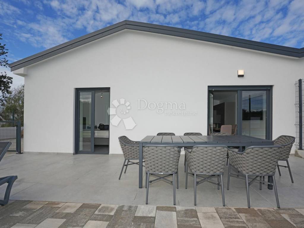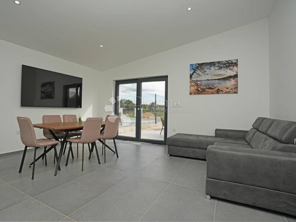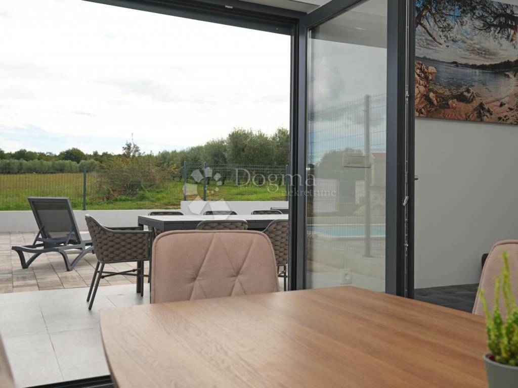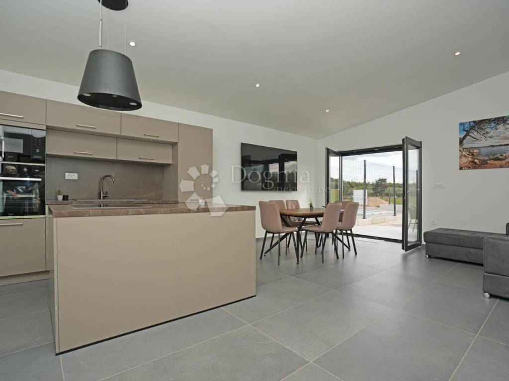 POREČ (surroundings) - Single-storey house with heated pool Welcome to your new modern oasis - a newly built, breathtaking single-storey house, located just a few minutes' drive from Poreč! This house, equipped with top-quality furniture, perfectly combines functionality and style, providing the warmth and comfort that your family deserves. Its net living area is 75m2 with a perfect layout, while the terrace is approximately 30m2. You enter through an elegant hallway that leads you to an open space with a kitchen and dining area, ideal for family gatherings and friendly socializing. The spacious living room with access to a covered terrace invites you to enjoy the fresh air, regardless of the season. This house offers three modern bedrooms, one of which has direct access to the terrace and a beautiful heated pool, as well as an en suite bathroom that guarantees intimacy and comfort. The other two bedrooms, ideal for family members or guests, share a practical bathroom, providing the necessary space for everyone. Built with care from quality materials, this house includes all modern amenities, including underfloor heating and air conditioning, so you will always have the ideal temperature within your four walls. Aluminum windows with electric roller shutters provide superior functionality and energy efficiency. The garden features a beautiful sundeck and heated pool that extend the summer season and create the perfect place to relax with family or friends. This property is not only ideal for living, but also represents an excellent opportunity for tourist rental, thanks to the proximity of all amenities. So that all your guests always have somewhere to park, the house also offers two parking spaces. Take a peek into your new lifestyle in this extraordinary house that offers everything you need for a comfortable, modern and carefree life!