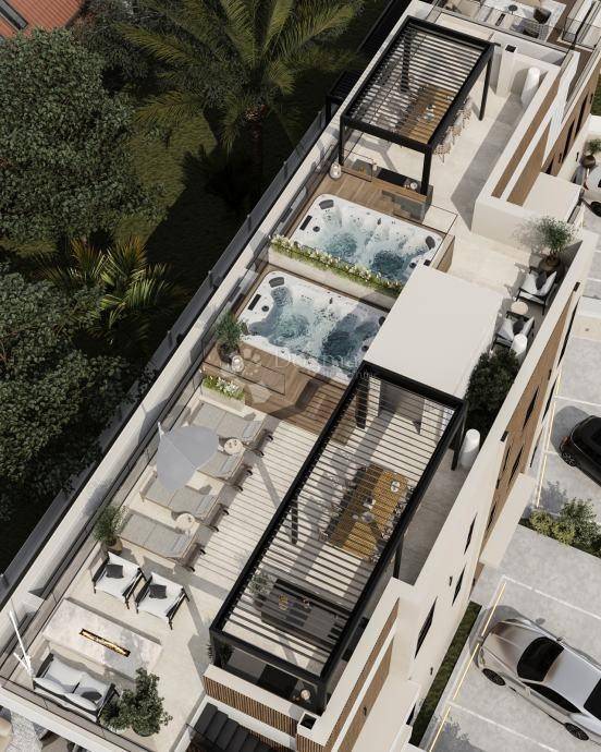 Yet the true crown of this residence is the 80 m rooftop terrace crafted for pure hedonism. Here, a jacuzzi awaits for evenings under the open sky, while the stars scatter above and the sea whispers its eternal song below.