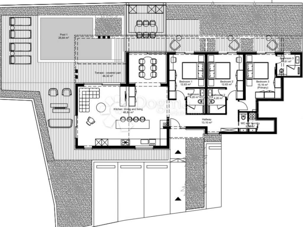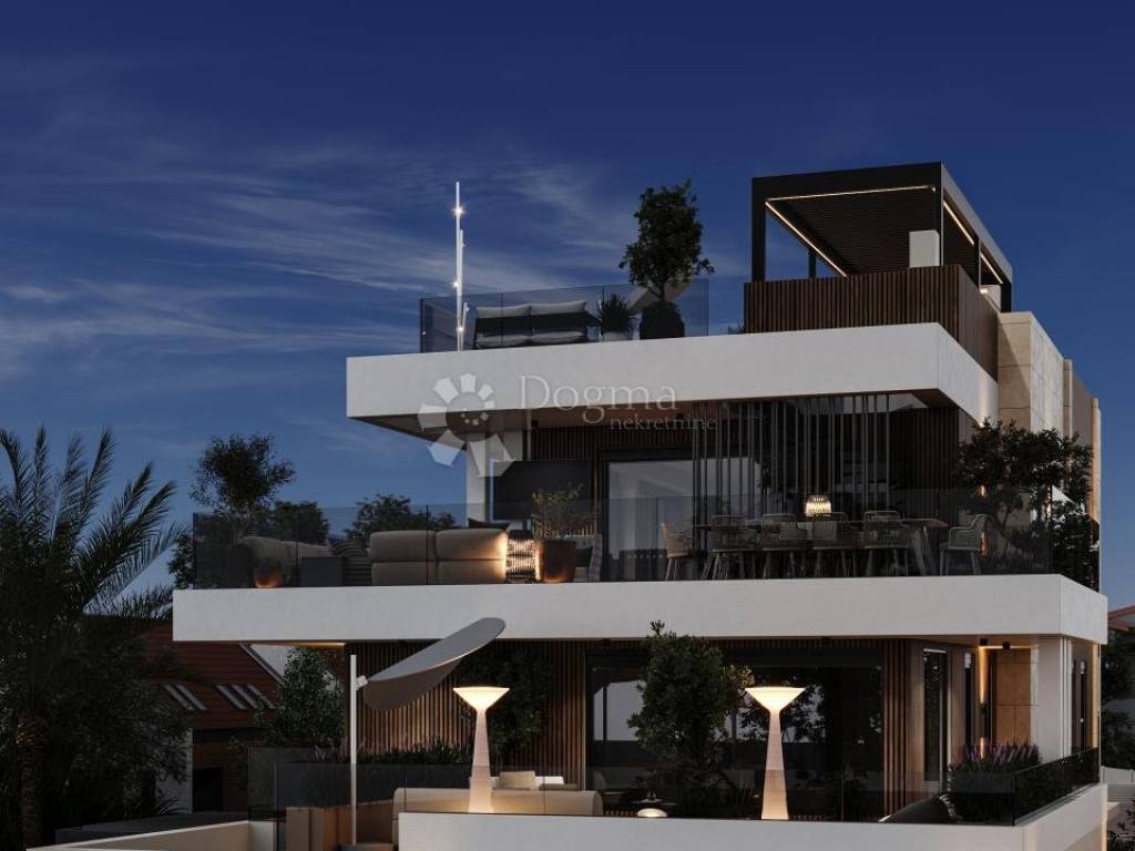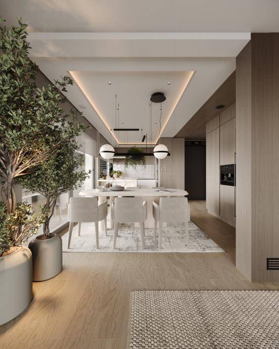 In the second row from the sea, where the scent of pine trees mingles with the silence of Zatons stone-paved streets, lies a residence that celebrates space, light, and contemporary luxury. Every square meter here has been carefully designed to bring a sense of freedom and ease from the open-plan living room, kitchen, and dining area of nearly 50 m, to the spacious terraces and private garden with a swimming pool.