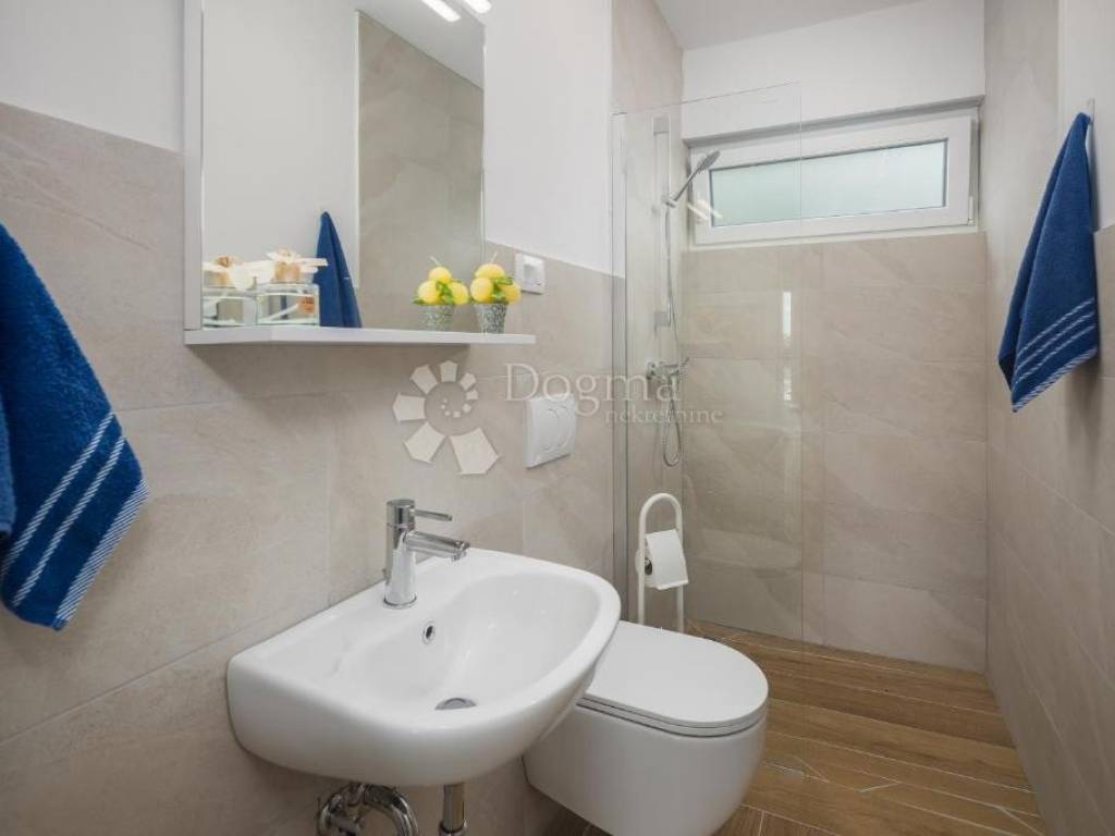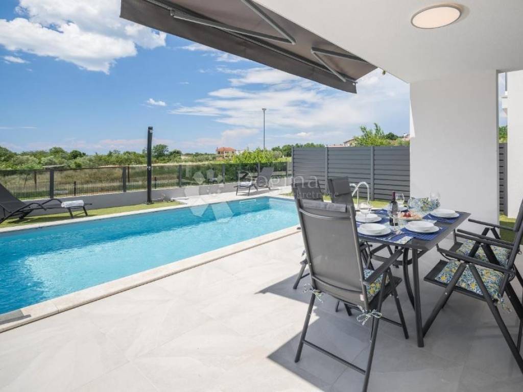 The ground floor consists of a spacious and bright living room connected to the kitchen and dining area in an open-plan concept, one bedroom, a guest toilet, and a terrace with direct access to the pool and sun deck an ideal place for relaxation and gatherings.