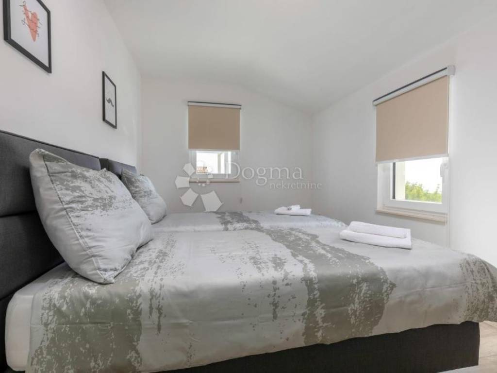 In the heart of a quiet village, just 1.5 km from the pristine Adriatic beaches, lies this beautiful two-story villa the perfect blend of luxury, comfort and Mediterranean charm. It is part of an exclusive complex of only eight luxury villas, ensuring intimacy and a high quality of life.