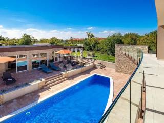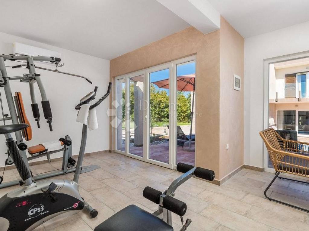 For additional comfort there is also a guest toilet, while a sauna, a workout room and a jacuzzi provide special luxury - located in a separate building opposite the 50 m villa, which connects the main house to an elegant 38 m swimming pool. Around the pool there is a sunbathing area with deck chairs, a large yard with enough space for children to play and swings for the youngest.