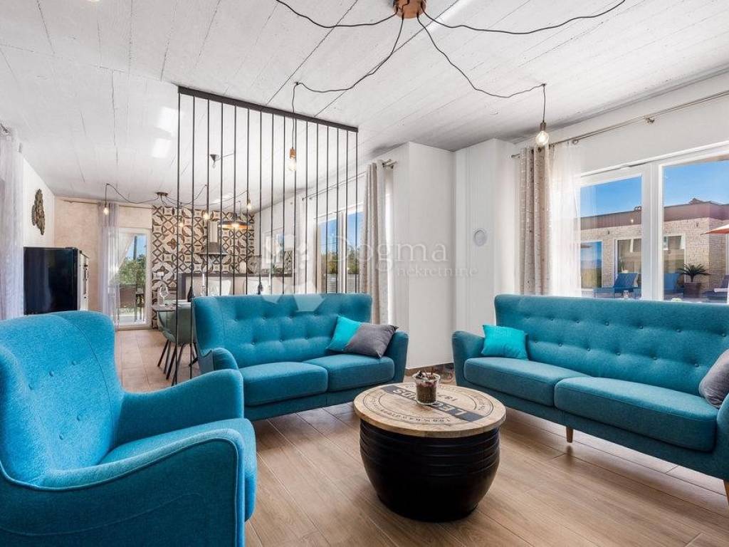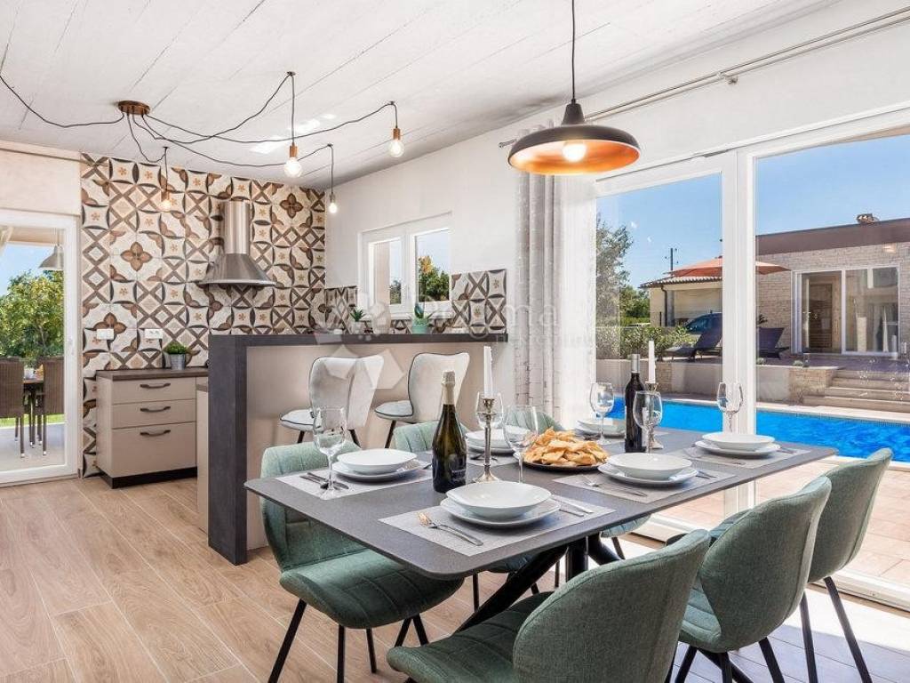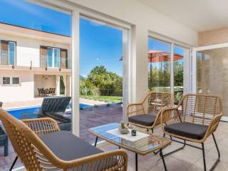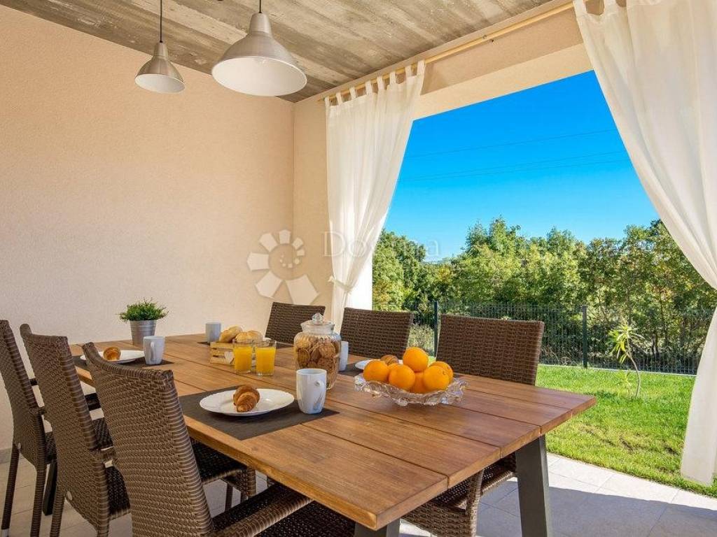In a quiet village near the town of Labin, on the eastern coast of Istria, is located this beautiful villa with a total area of 208 m. Surrounded by untouched nature and lush greenery, it is an ideal choice for those who want to spend their vacation in peace, relaxation and complete privacy.