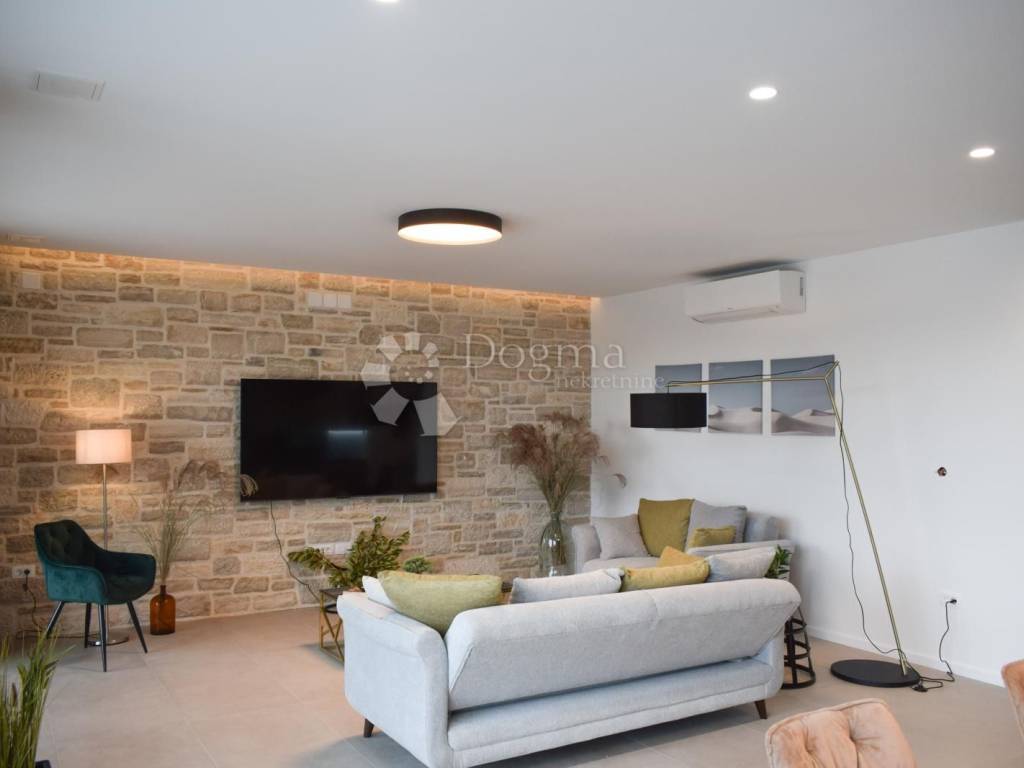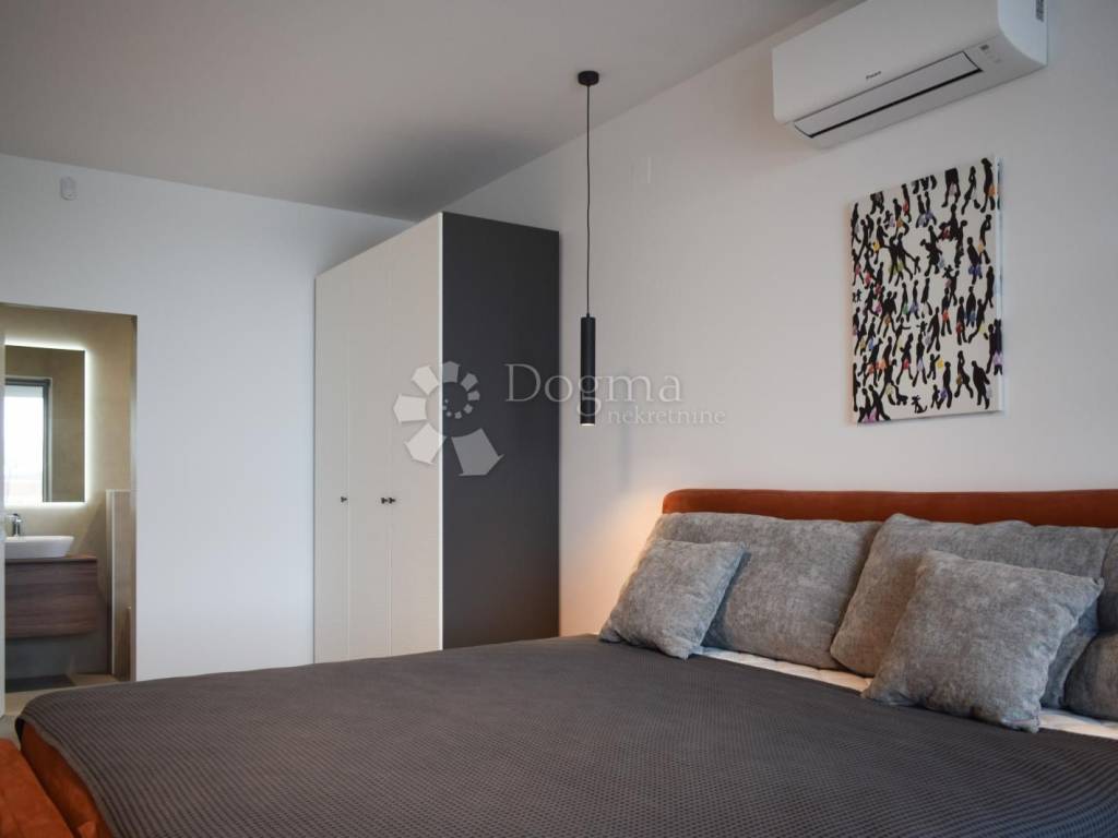 The house is equipped with a modern electric underfloor heating system that can be controlled via Wi-Fi, and each room has its own air conditioning for comfortable living during the hot summer months.