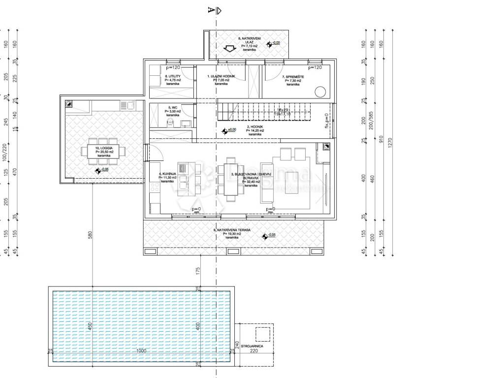 The ground floor of the house offers a spacious living area consisting of a modernly decorated kitchen, dining room and living room with access to a covered terrace. There is also a utility room, toilet, storage room and a fantastic 47.25 m swimming pool and whirlpool, perfect for relaxing and enjoying warm days.