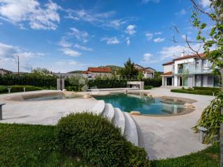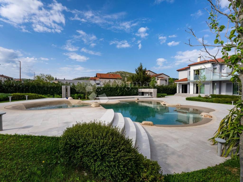 An exclusive villa in a quiet part of the city a combination of elegance, comfort and complete privacy! For sale is an attractive villa located in a quieter part of the city, perfect for those looking for a luxurious home in which style, comfort and a peaceful environment stand out. It extends on a plot of 1294 m, while the living area is approximately 280 m spread over two floors with a carefully designed layout. The ground floor is dominated by a spacious open-plan living room that harmoniously connects to the dining room and modern kitchen. Large glass walls allow for plenty of daylight and open up the view and access to the covered terrace, garden and swimming pool. This floor also includes an elegant bedroom with direct access to the courtyard, a modernly decorated toilet and a technical room with an additional entrance to the rear of the property. An internal staircase leads to the first floor where there are three bedrooms a children's room with access to a balcony, an additional room and a master bedroom with an en-suite bathroom, dressing room and a separate balcony. The first floor also includes an additional bathroom equipped with a luxurious whirlpool bath and another toilet. In front of the house there is a spacious swimming pool with an integrated jacuzzi, a covered terrace with a summer kitchen and a shower, which makes it an ideal space for relaxation and socializing. There are also two garage spaces and about nine outdoor parking spaces available. The entire villa is equipped with high-quality designer furniture, and the custom-made joinery further enhances the impression of exclusivity. The building is protected by security doors, the glass walls have UV protection that reduces the heating of the space, while underfloor heating and air conditioning systems are distributed throughout the building for maximum comfort. For more information and a tour, please contact: