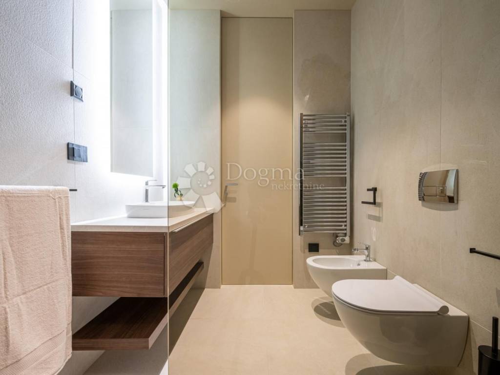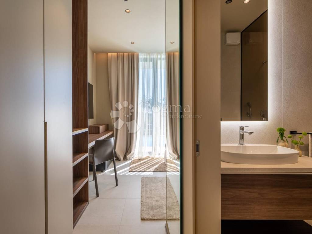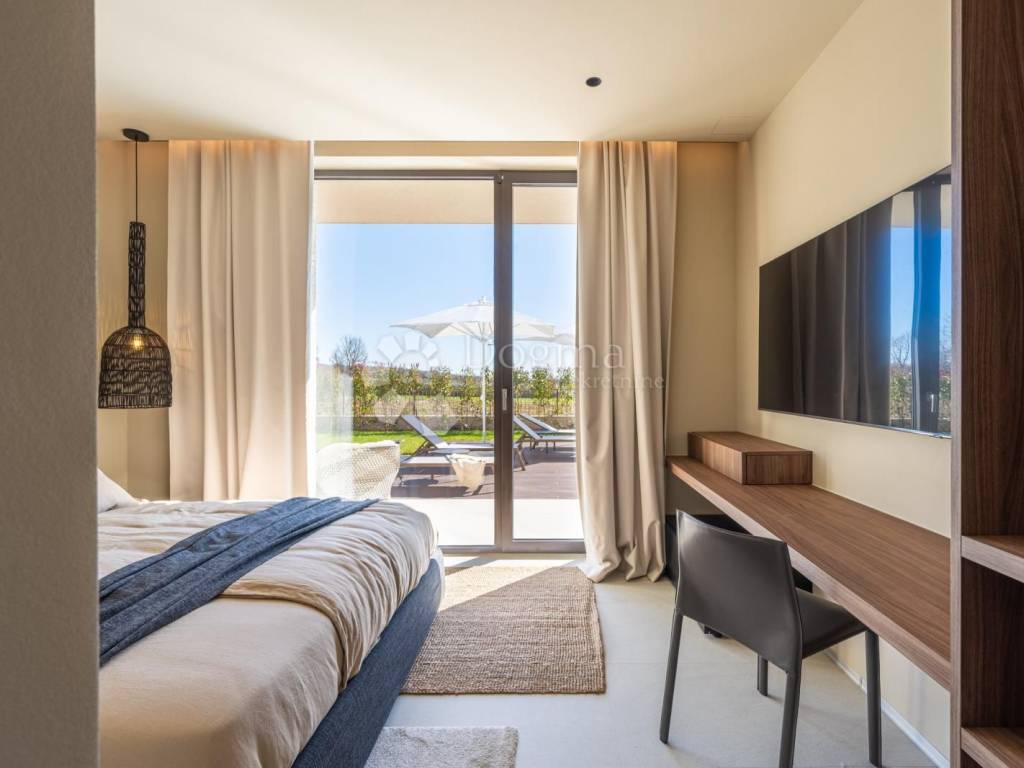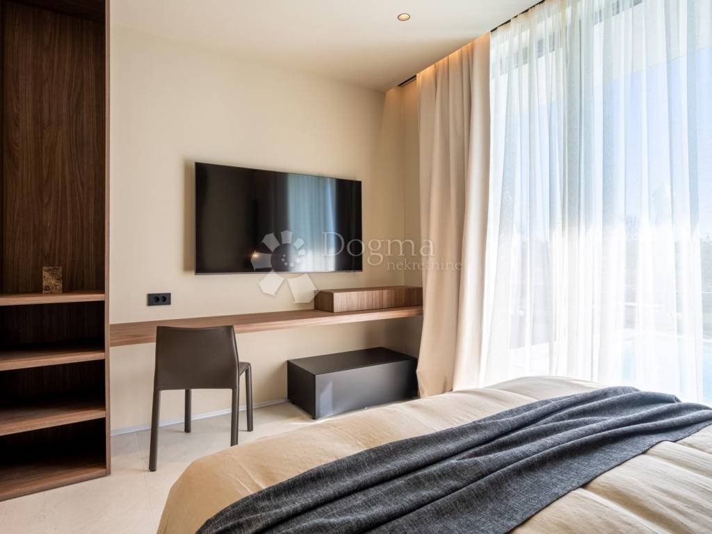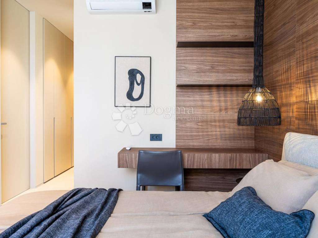In an exceptional location in a newly built settlement (completely new infrastructure) is this modern single-storey house of top design, quality and fully equipped. Built in the first row of the settlement, next to a green area and olive groves, it is guaranteed an open view of the sea in the distance. The villa is fully automated via the Loxone smart home system, including a smart charger for electric vehicles.