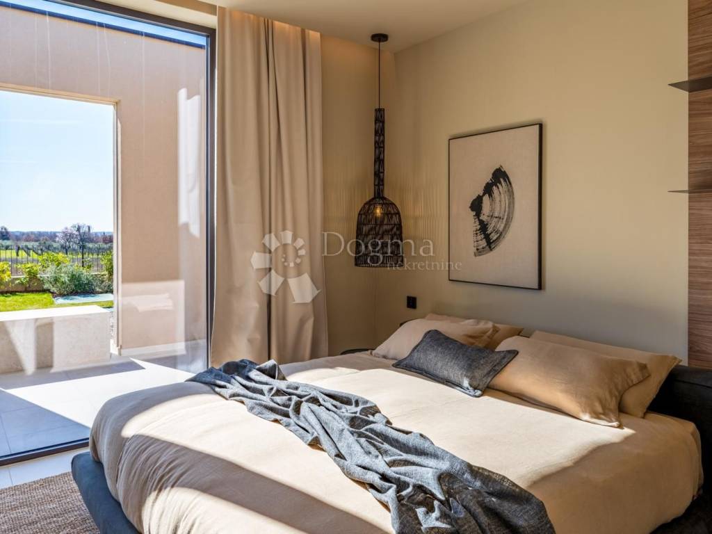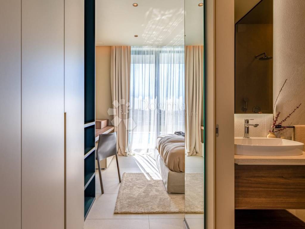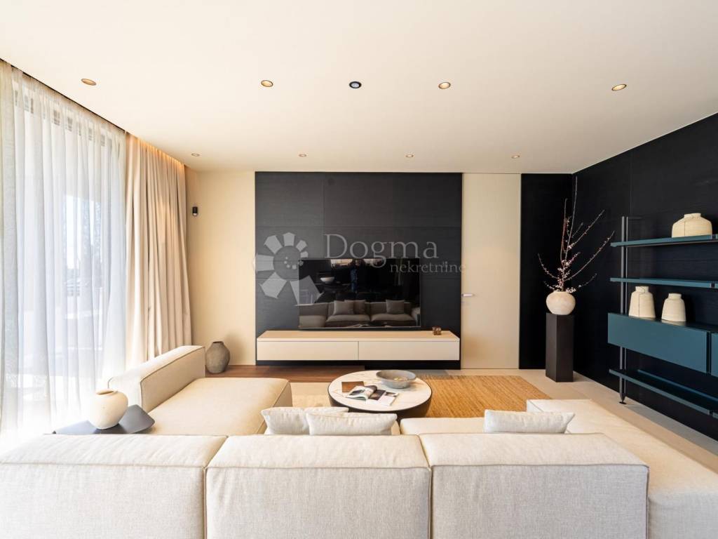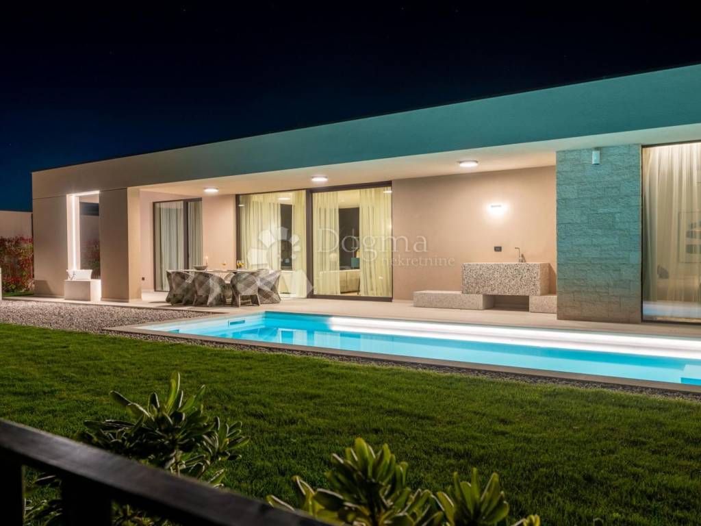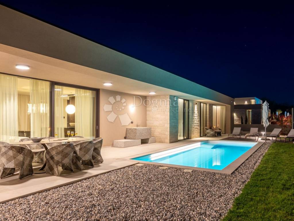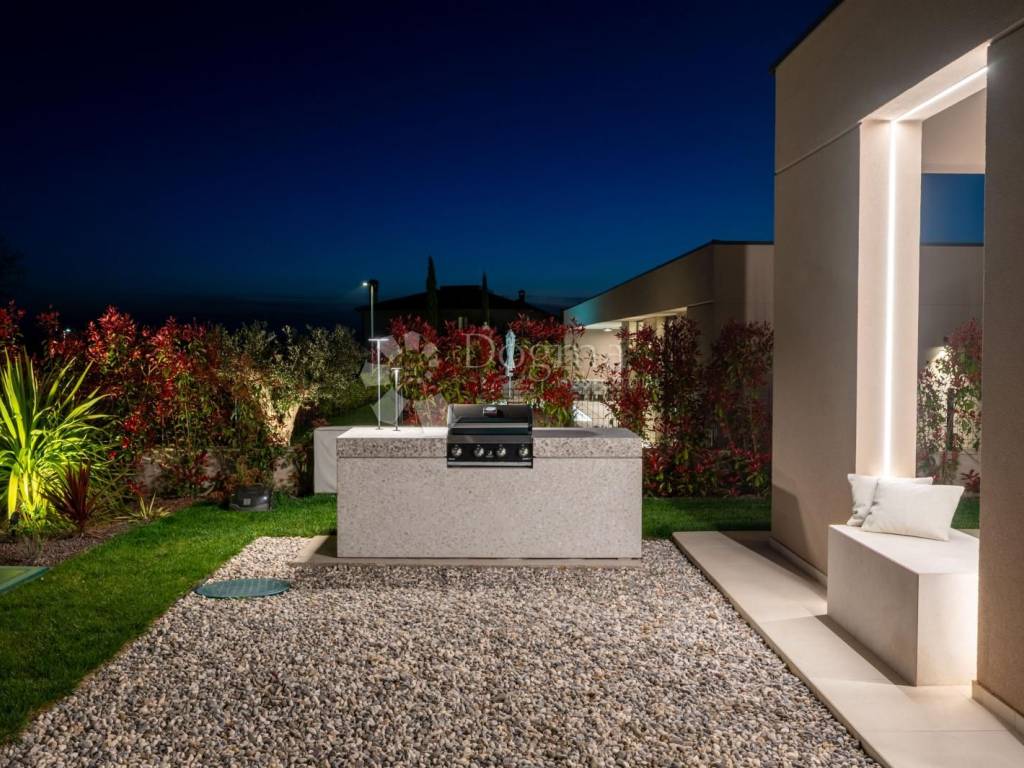 In an exceptional location in a newly built settlement (completely new infrastructure) is this modern single-storey house of top design, quality and fully equipped. Built in the first row of the settlement, next to a green area and olive groves, it is guaranteed an open view of the sea in the distance. The villa is fully automated via the Loxone smart home system, including a smart charger for electric vehicles.